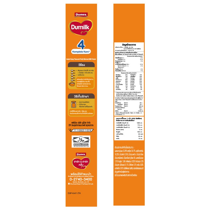 [แพ็ค 3 ถุง] ดูเม็กซ์ นมผงสำหรับเด็ก ช่วงวัยที่ 4 ดูมิลค์ ฅอมพลีตแฅร์ รสน้ำผึ้ง 1400 กรัม DUMEX DUMILK 3PLUS HONEY 1400G