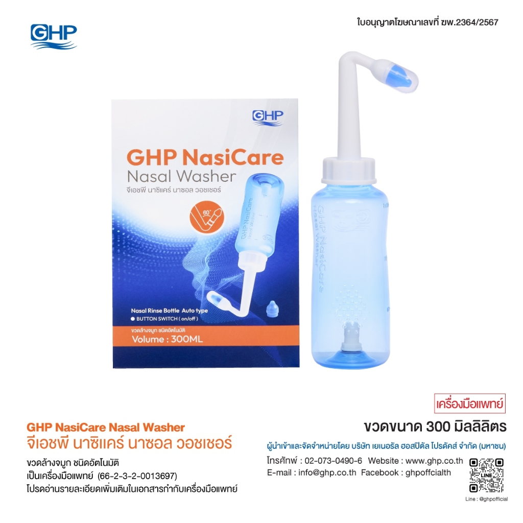 โปรคู่สุดคุ้ม [ขวดล้างจมูก GHP Nasi CareNasal Washer+ น้ำเกลือ GHP 1000ml]