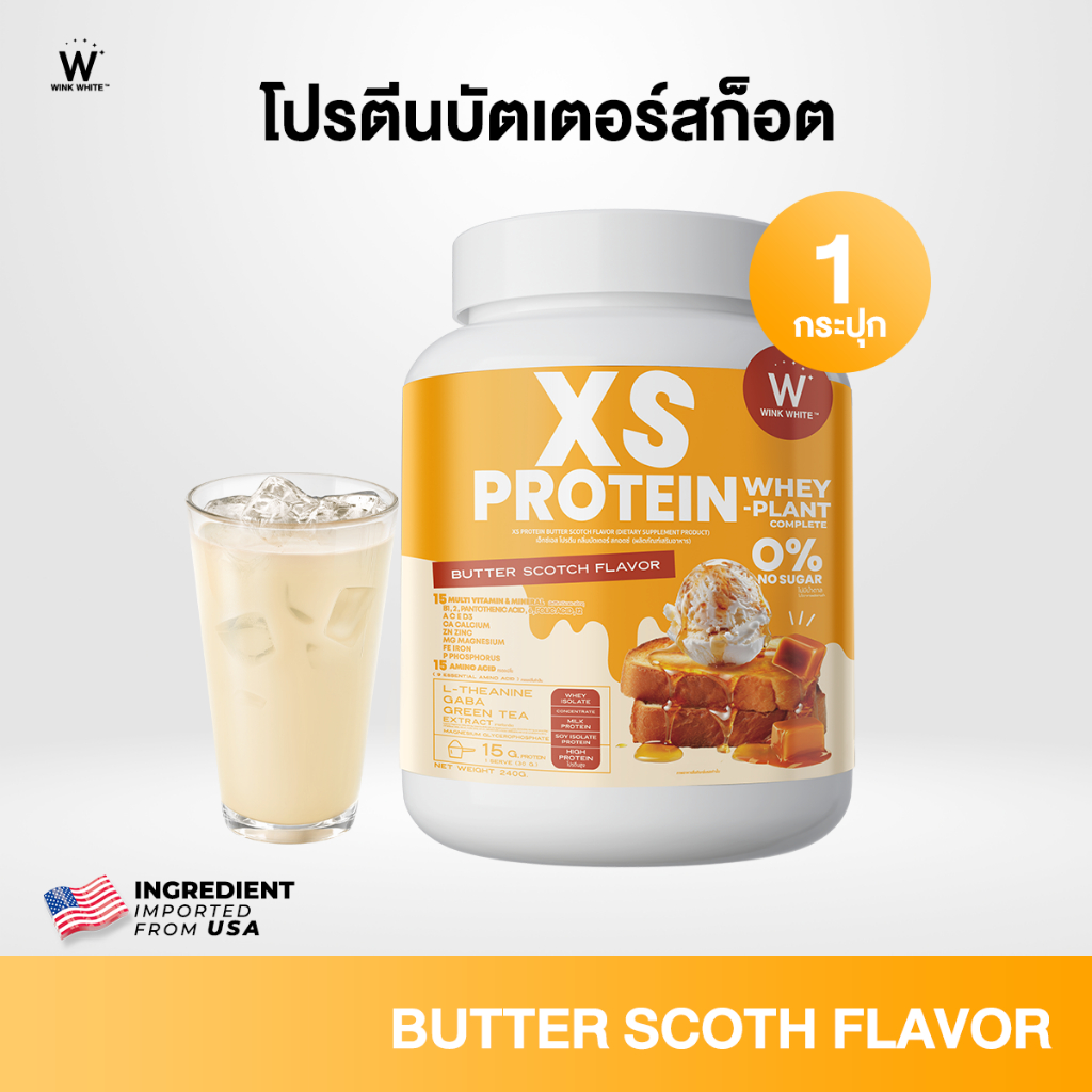 [โปรตีนวิงค์ไวท์] Wink White XS PROTEIN โปรตีนคุมหิว ท ดแทนมื้ออาหาร แคลอรี่ต่ำ 1 กระปุก 240 กรัม