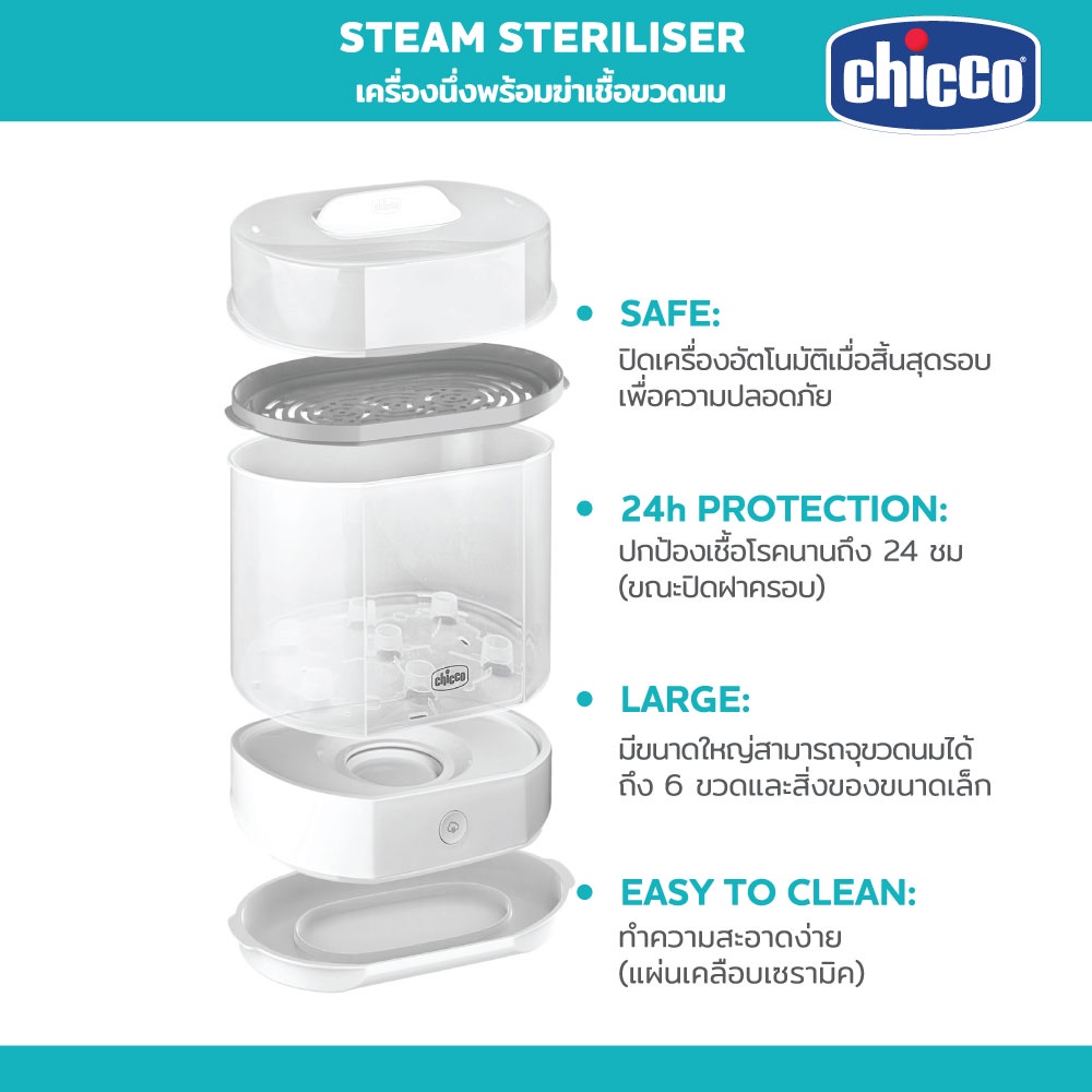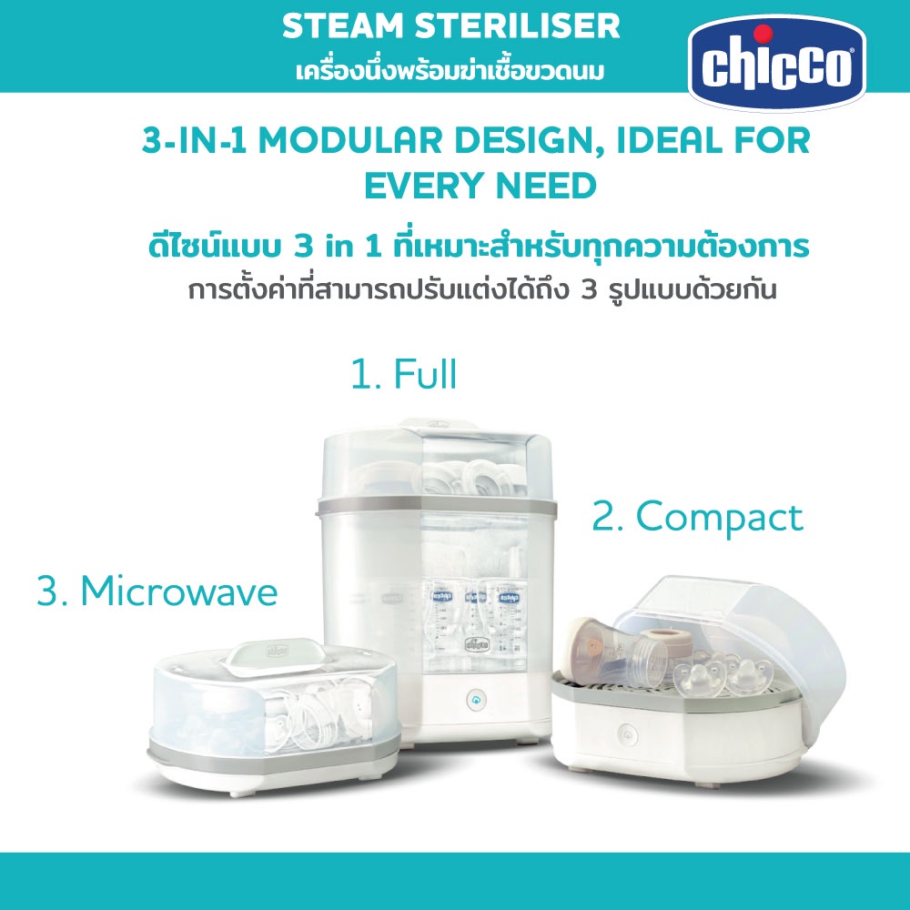 CHICCO Steam Steriliser 3 In 1 เครื่องนึ่งพร้อมฆ่าเชื้ อขวดนมและสิ่งของขนาดเล็ก