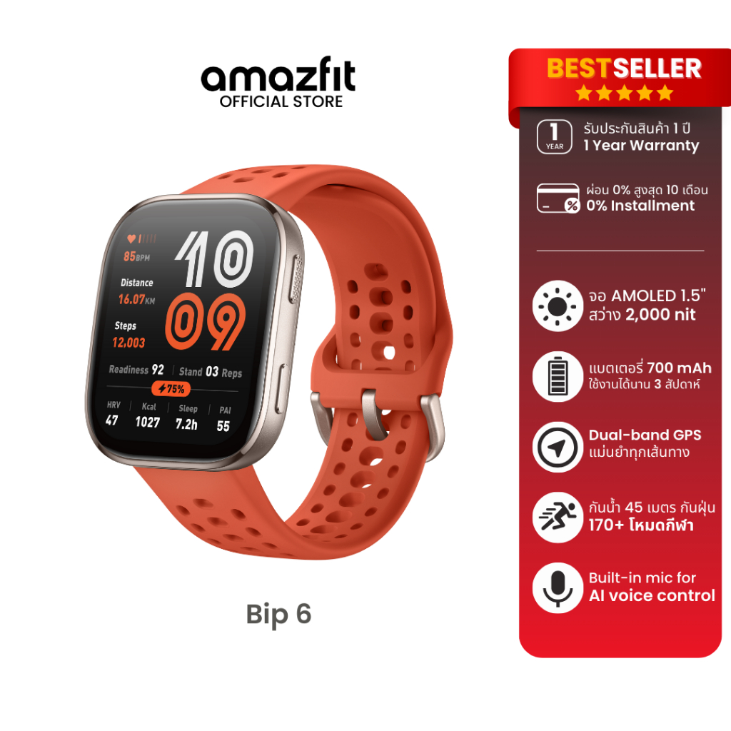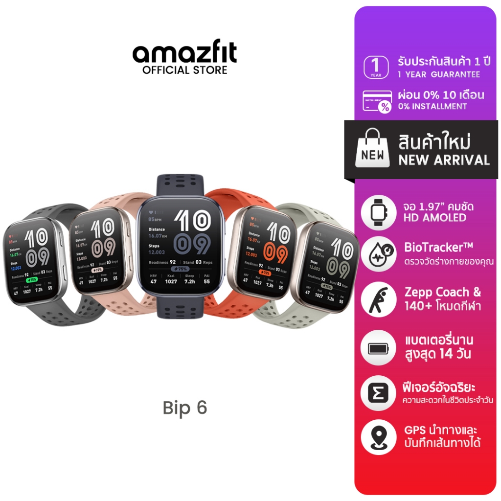 [Hot Item] Amazfit Bip 6 46mm Smartwatch หน้าจอใหญ่พร้อม GPS แม่นยำและโหมดกีฬา 140+ BioTracker™ ตรวจจับสุขภาพ 24 ชม.