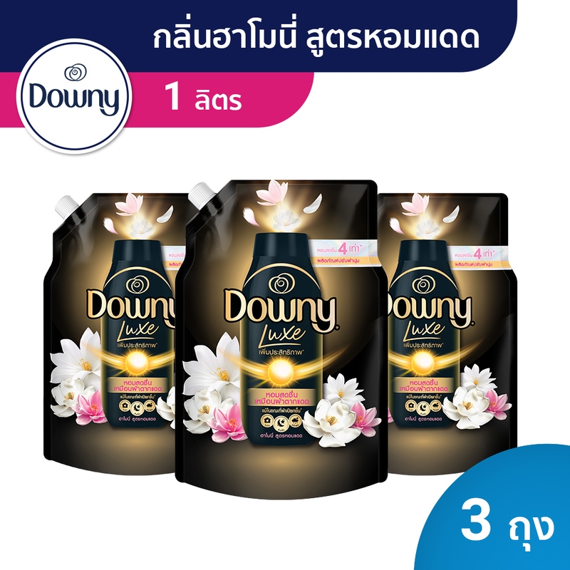 [ใหม่] ดาวน์นี่ น้ำยาปรับผ้านุ่มสูตรเข้มข้น สูตรหอมแดด 1ลิตรx3 [New] Downy Concentrated Fabric Softener Refill 1Lx3
