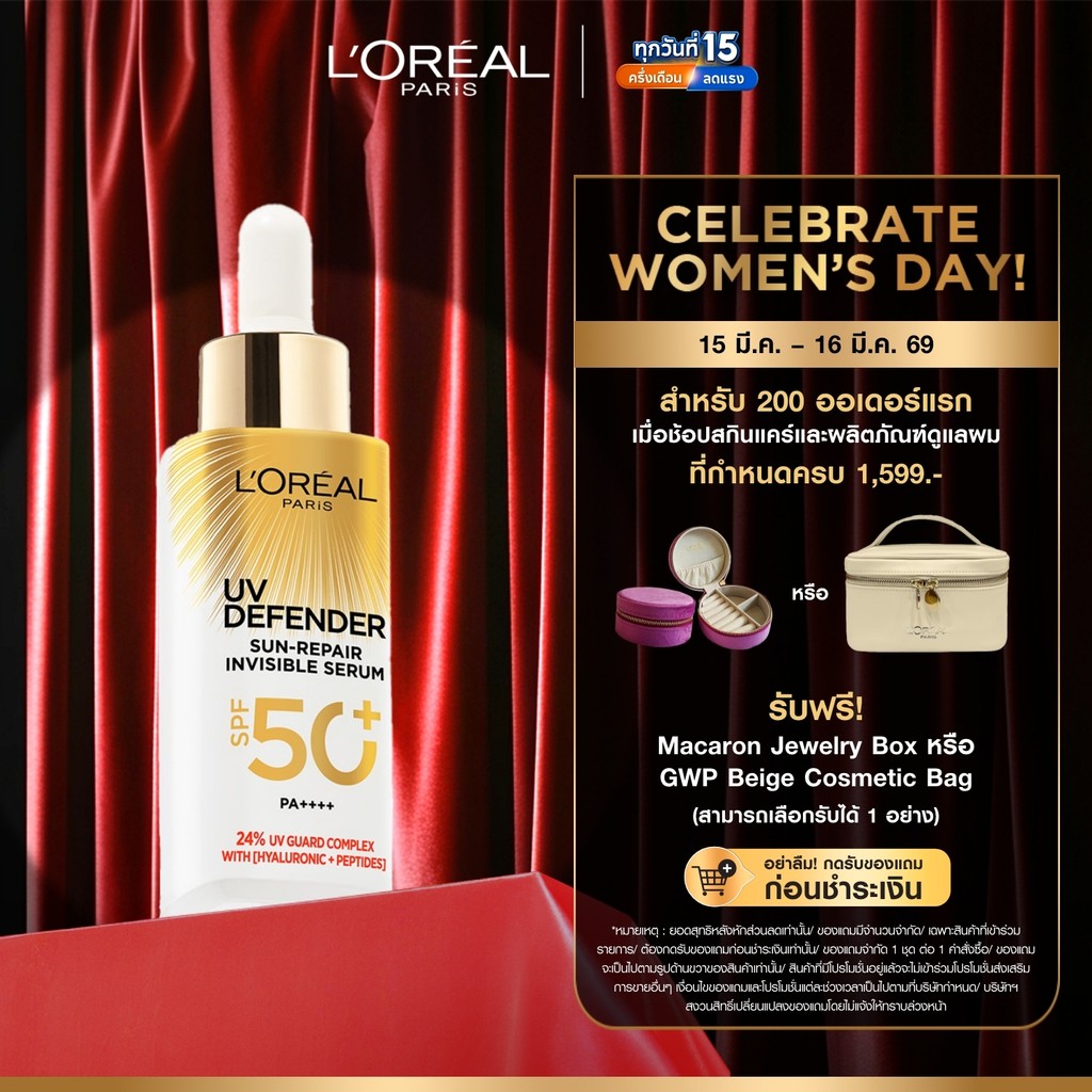 ลอรีอัล ปารีส L'Oreal Paris UV Defender Sun-Repair Invisible Serum SPF 50+ PA+++ เซรั่มกันแดดเนื้อบางเบา 30ml