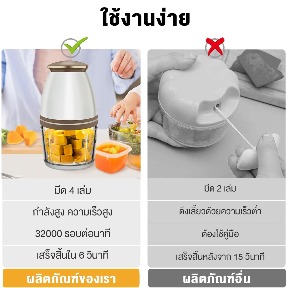 🌟 รับประกัน 1 ปี🌟 เครื่องปั่นอาหารเด็ก เนื้อสัตว์ พริก ผัก ผลไม้ เครื่องบด เครื่องบดอาหาร