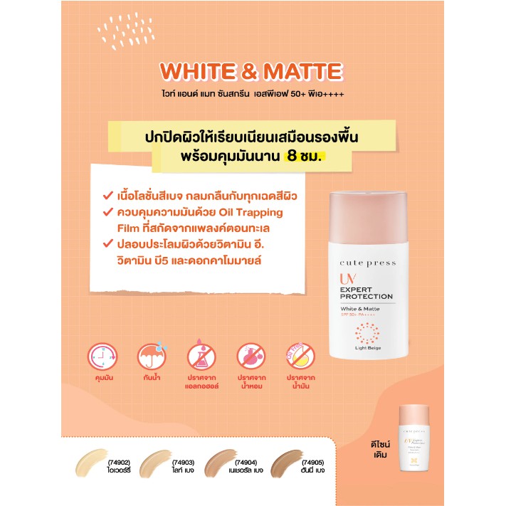 🌟 เพิ่มปริมาณ 30% กันแดด คิวท์เพรส CUTE PRESS UV EXPERT WHITE & MATTE SUNSCREEN SPF 50+ PA+++ 40มล.