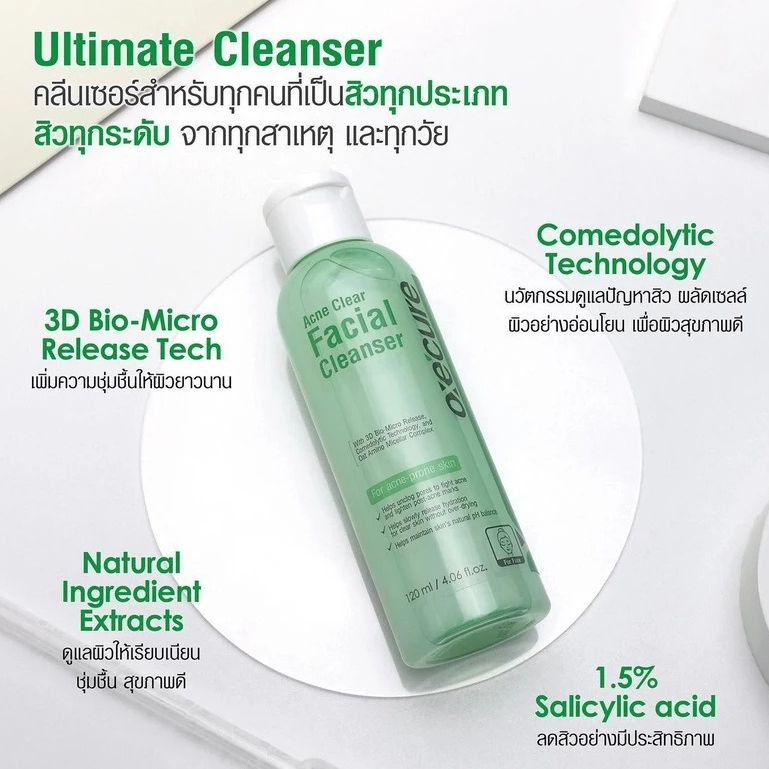 ถูก/แท้/มีไลฟ์ เจลล้างหน้า Oxe'cure Facial Cleanser อ๊อกซีเคียว oxecure คลีนเซอร์ ทำความสะอาดหน้า คุมมัน ลดสิว หน้าใส