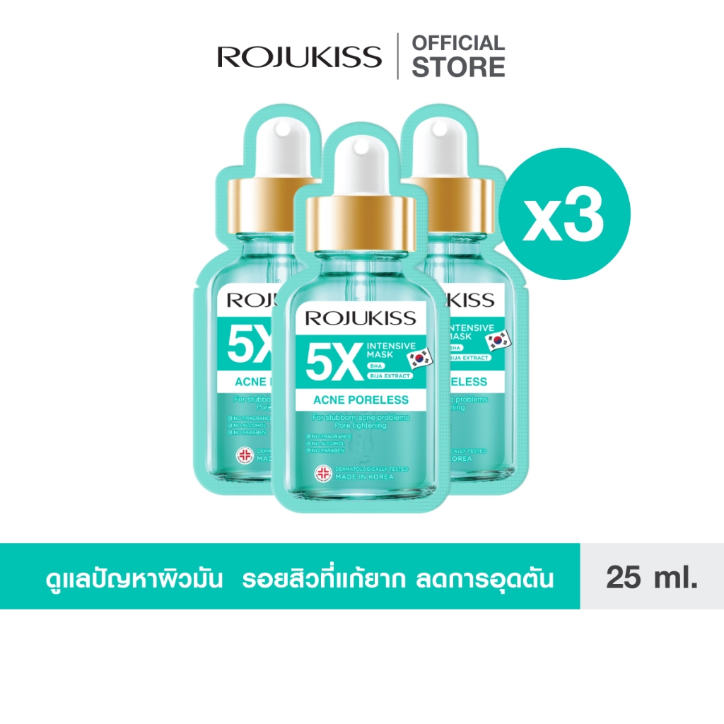 [ลด50%] โรจูคิส แอคเน่ พอร์เลส 5X อินเทนซีฟ มาส์ก Rojukiss Acne Poreless 5X Intensive Mask 25 มล. x3