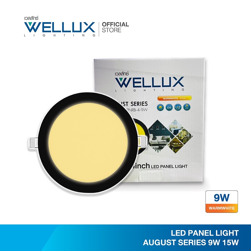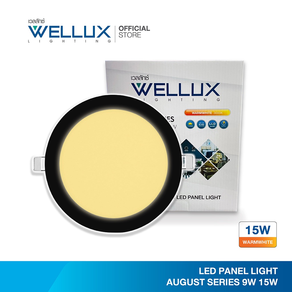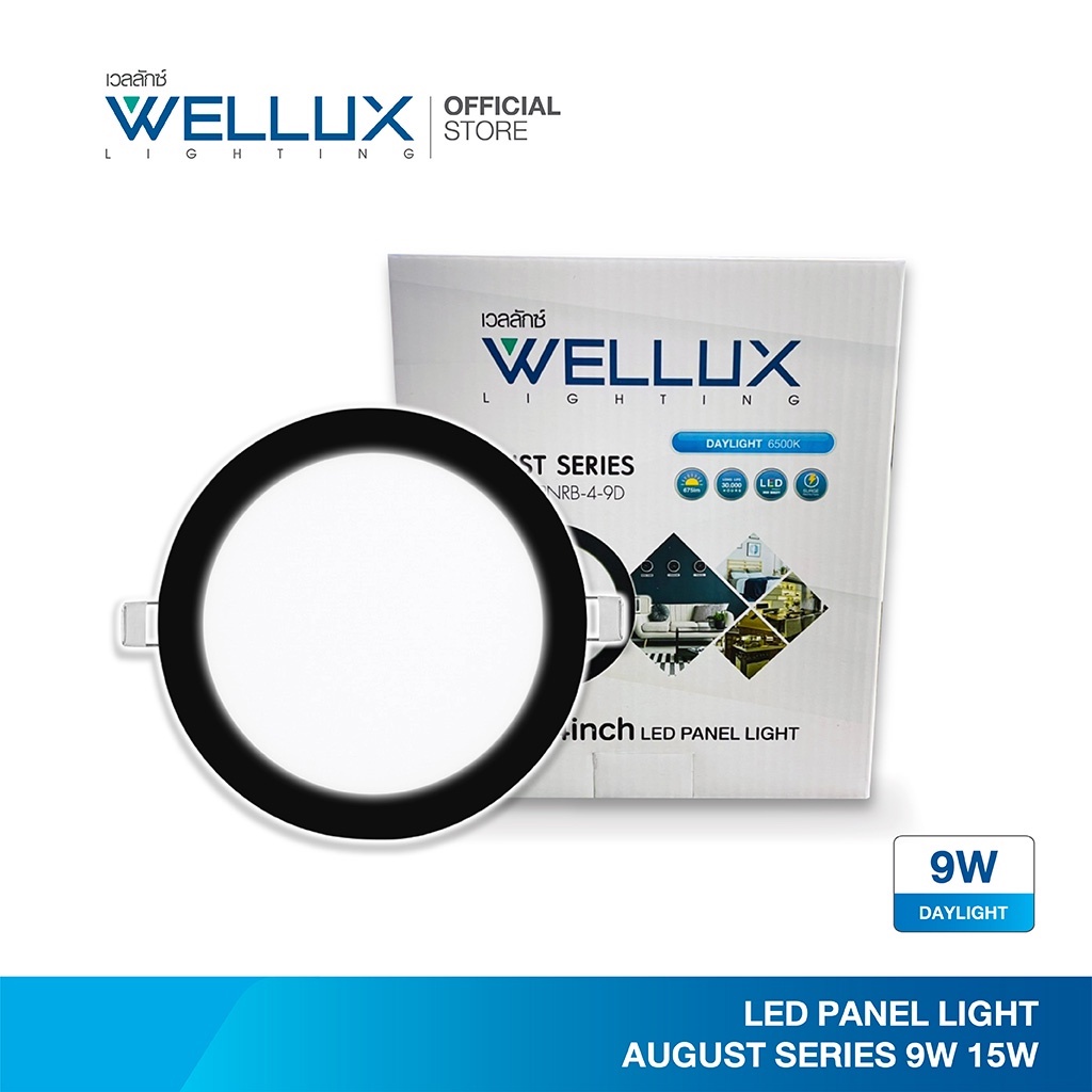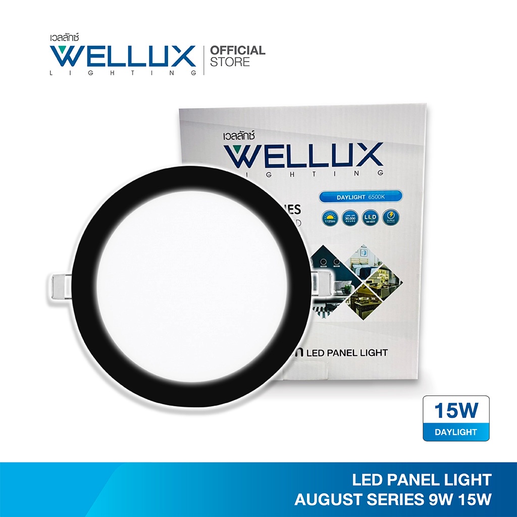 [ขอบดำ]WELLUX โคมไฟดาวน์ไลท์อลูมิเนียมฝังฝ้ารุ่นบาง 9W 15W แสงขาว แสงวอร์ม LED Downlight Panel light