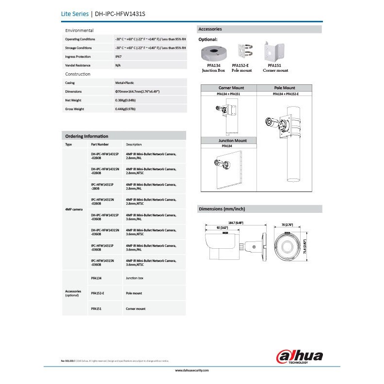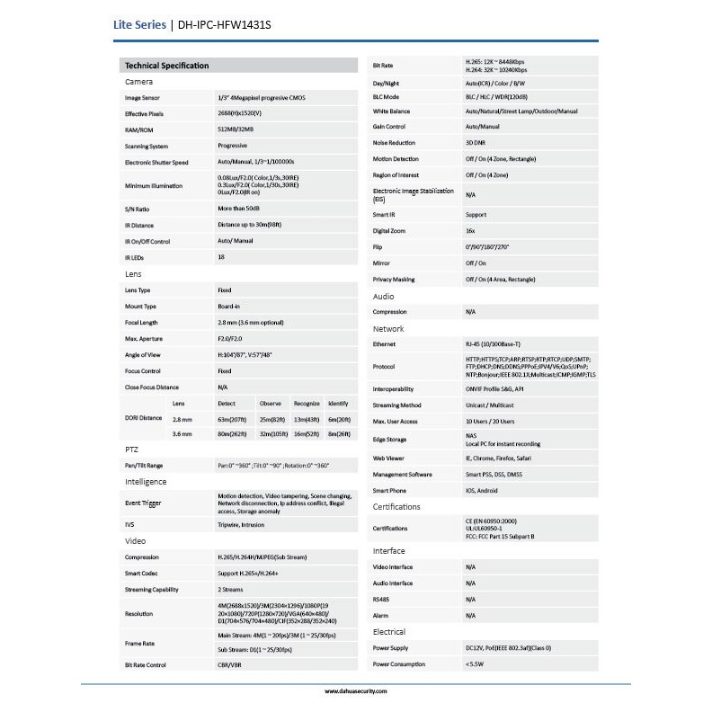 [7.25]มีส่งด่วน!! DH-IPC-HFW1431S (4MP) เลนส์3.6mm กล้องวงจรปิด DAHUA WDR IR Mini-Bullet Camera