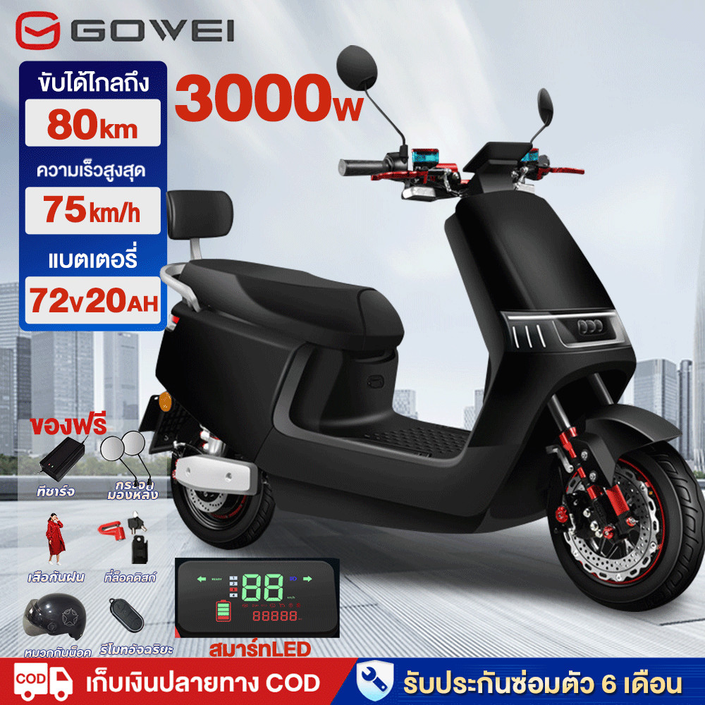 GOWEI 3000W มอเตอร์ไซค์ไฟฟ้า รถมอเตอร์ไซต์ไฟฟ้า รถไฟฟ้าผู้ใหญ่ ความเร็ว75กม./ชม รถไฟฟ้าความเร็วสูง CHILWEE72V20AH รุ่นอั
