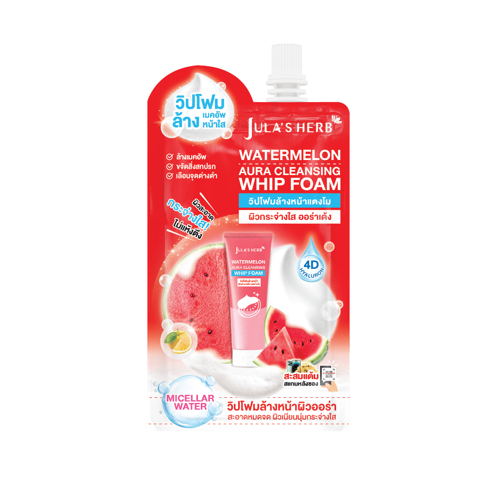 [ 3หลอด เซตสุดคุ้ม ] วิปโฟมล้างหน้าแตงโม Watermelon Aura Cleansing Whip Foam จุฬ าเฮิร์บ