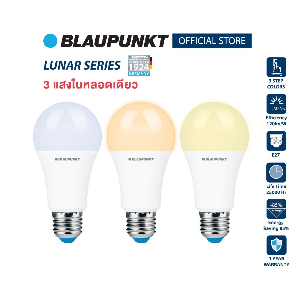 BLAUPUNKT หลอดไฟ 3 แสงในหลอดเดียว 12W ขั้วE27 LED Blub A60 มาตรฐานเยอรมัน รับประกัน 2 ปี