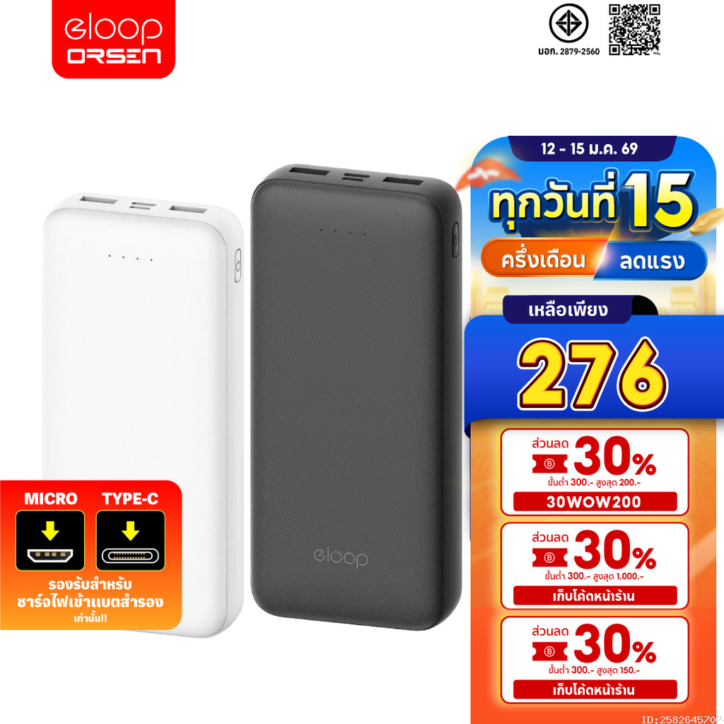 [276บ. ส่งด่วน] Eloop E34 แบตสำรอง 20000mAh Powerbank USB 2.4A 12W พาวเวอร์แบงค์ เพาเวอร์แบงค์