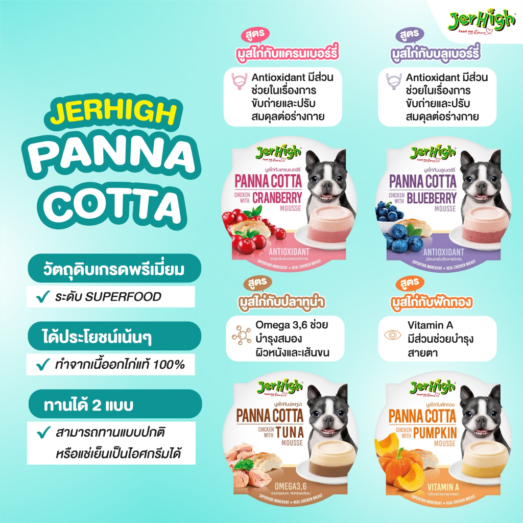 [แบรนด์ขายดีอันดับ 1]JerHigh เจอร์ไฮ พานาคอตต้า ขนมหมา ขนมสุนัข 70 กรัม (แพ็ค 6 ชิ้น)