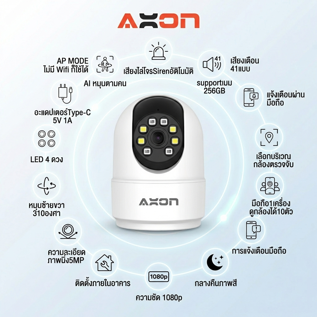 [ถูกที่สุด] Axon IP Home Shield กล้องวงจรปิด ภาพสี24ชั่วโมง รองรับ WIFI ระบบเสียงแจ้งเตือน การสนทนา 2 ทิศทาง ประกัน 2ปี