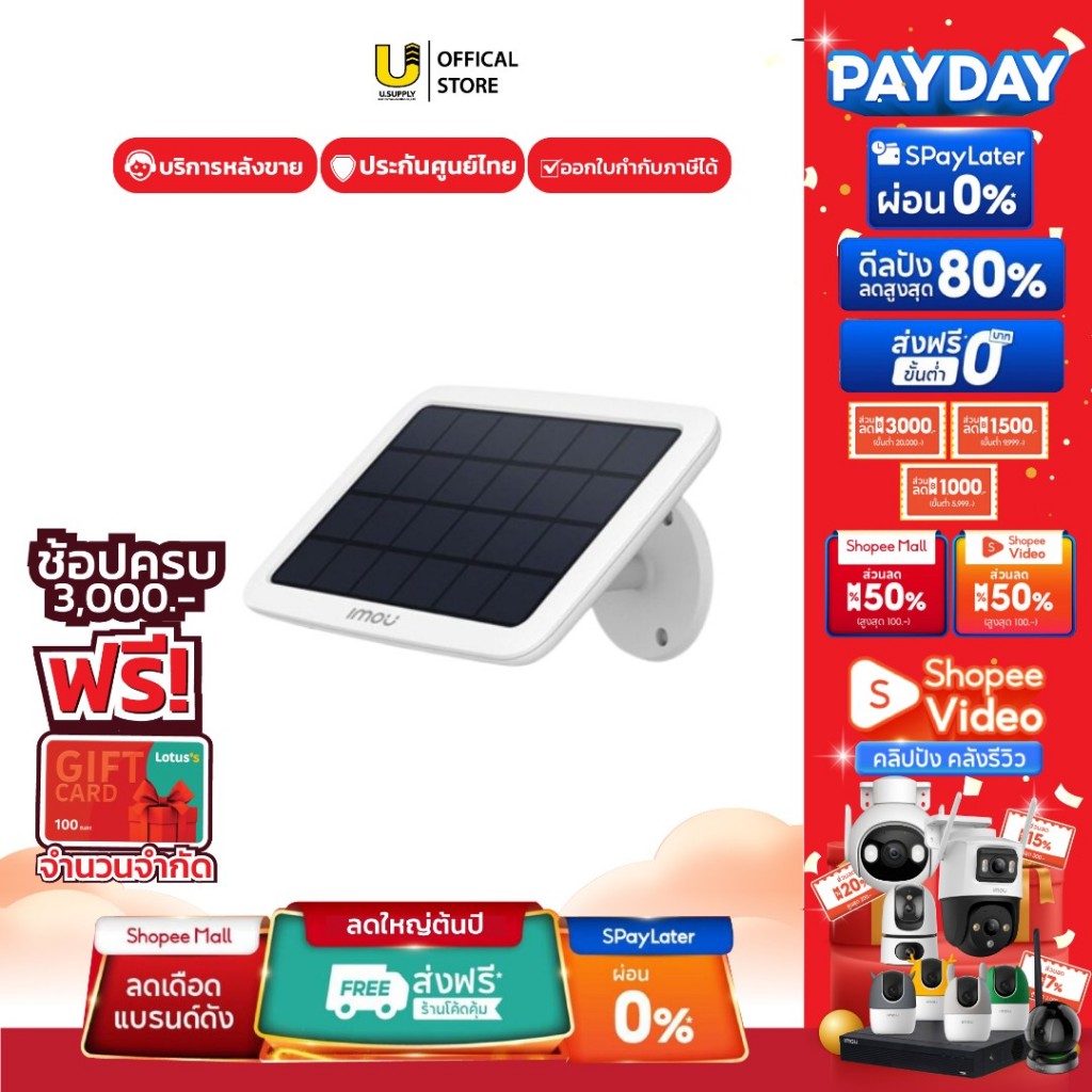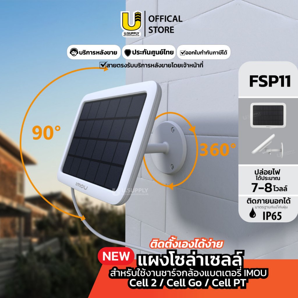 [2.2]มีส่งด่วน!! IMOU รุ่น FSP11 แผงโซลาร์เซล ชาร์จแบตเตอรี่กล้องวงจรปิด ใช้กับ IMOU Cell2 , Cell GO