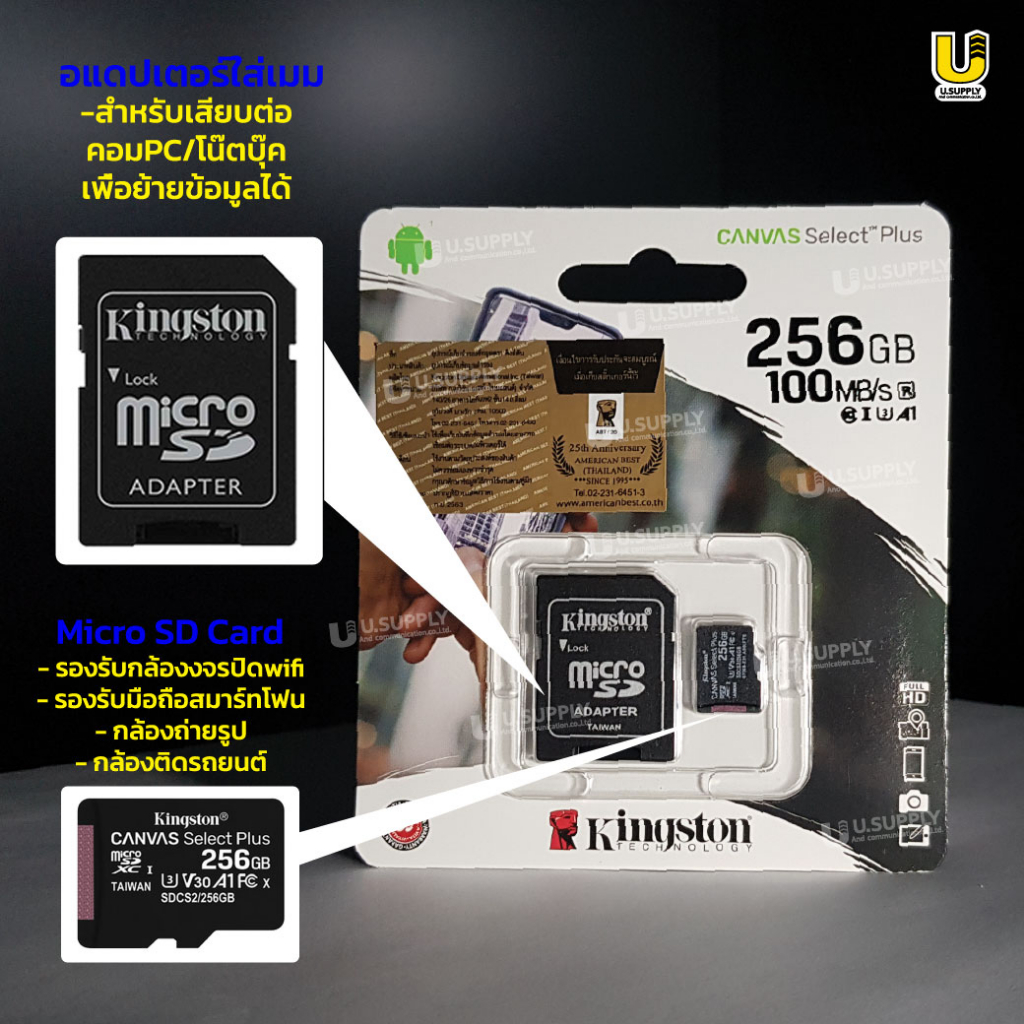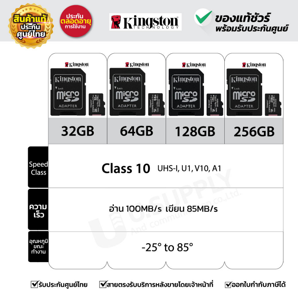 [1.1]มีส่งด่วน!! ✔️เมมเเท้100%‼️เมมโมรี่การ์ด Kingston MicroSDClass10 256GB ประกันตลอดชีพ