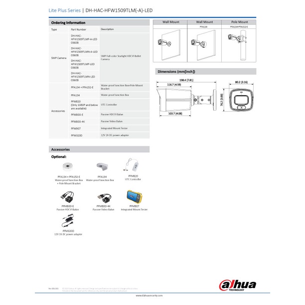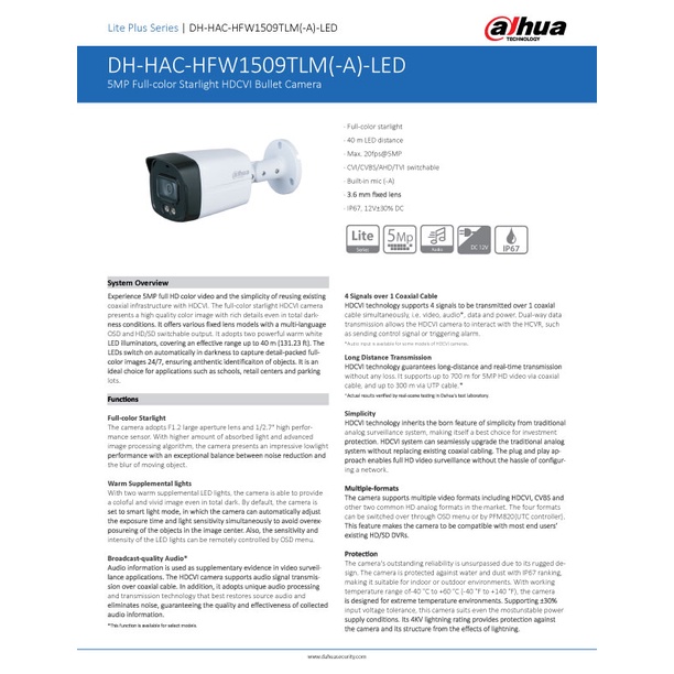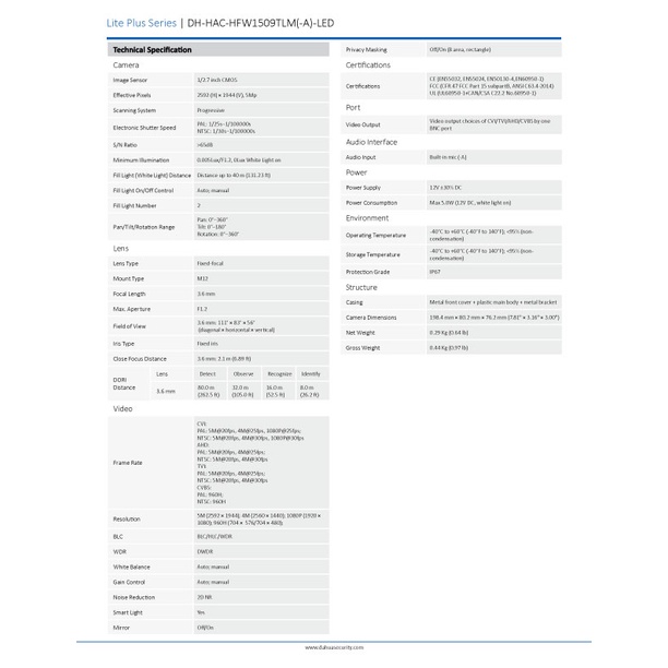 [7.25]มีส่งด่วน!! DAHUA รุ่น DH-HAC-HFW1509TLMP-A-LED 5MP ภาพสี 24 ชม. กล้องวงจรปิด