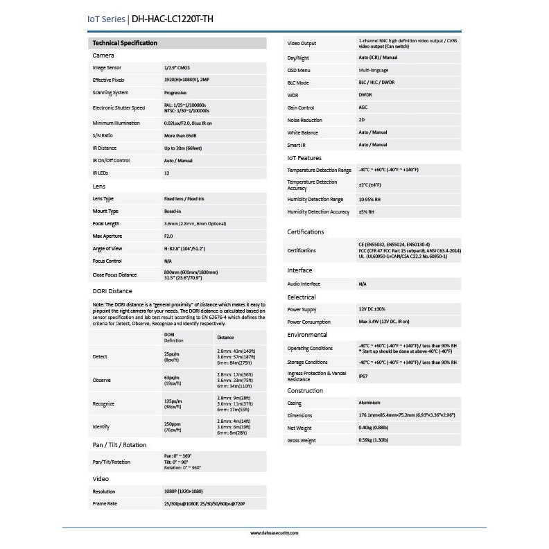 [2.2]มีส่งด่วน!! DAHUAรุ่น DH-HAC-LC1220TP-TH เลนส์ 3.6mm แนะนำใช้งานกับเครื่องบันทึกที่รองรับ