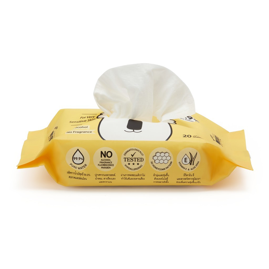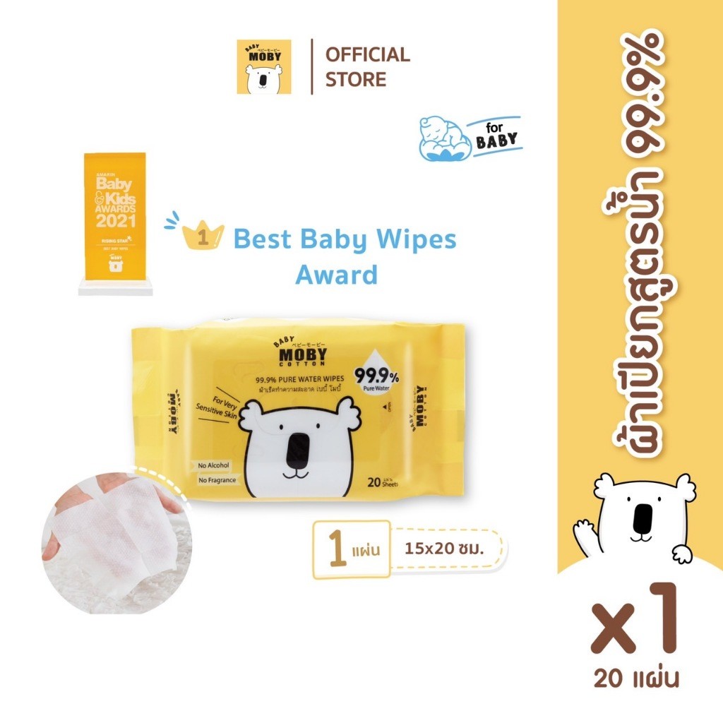 Baby Moby ผ้าเปียก 99.9% เพียววอเตอร์ 20 แผ่น/ห่อ (1 ห่อ)