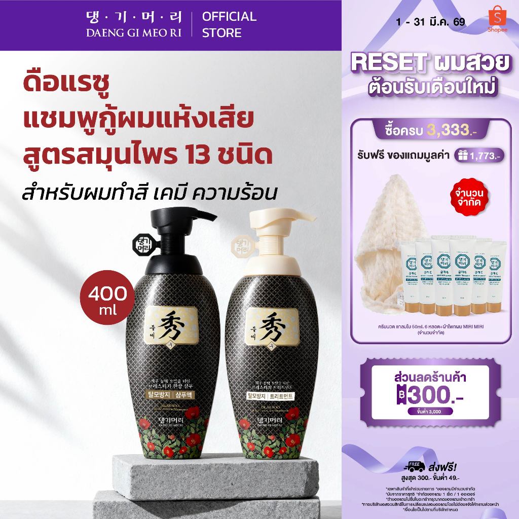 [Best Seller] DAENG GI MEO RI แชมพูลดผมร่วง แทงกีโมรี สูตรดือแรซู DLAESOO Shampoo/Treatment