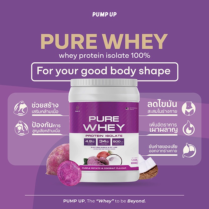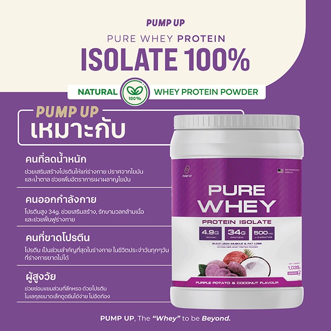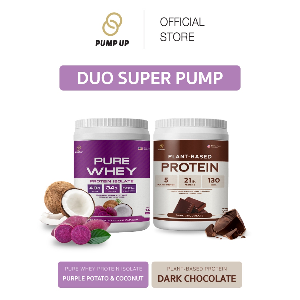 [Bundle Set] PUMP UP Whey Protein Isolate100% Purple Potato and Coconut flavor + Plant Protein Isolate Dark Chocolate