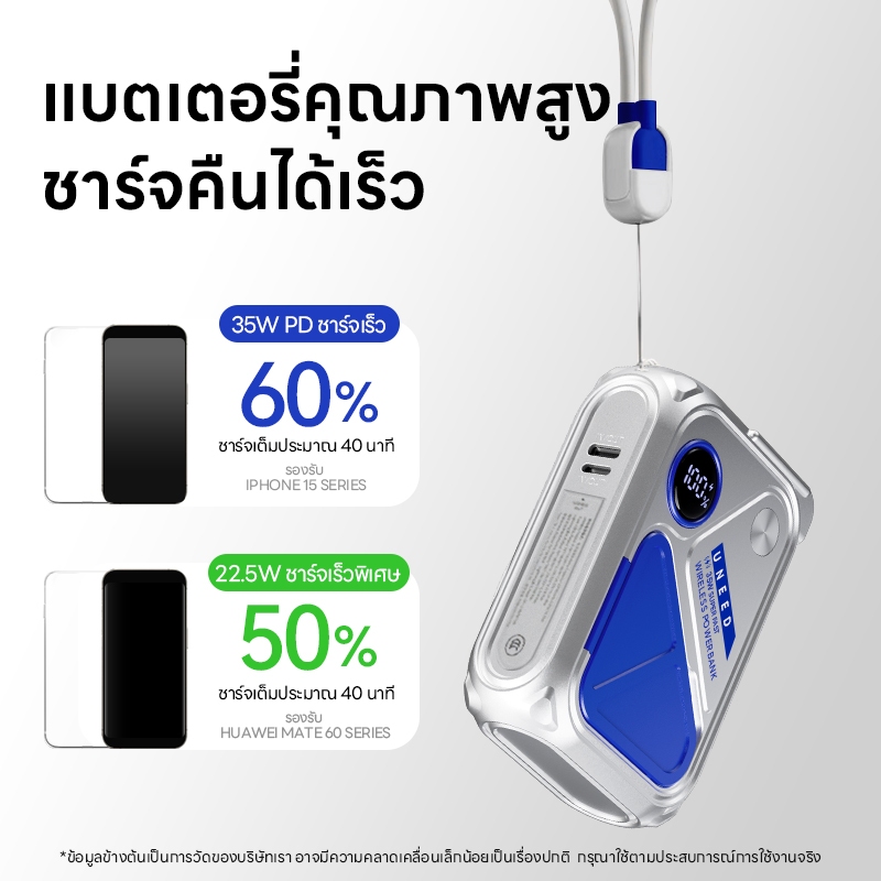 [CCC Mark] UNEED Powerbank Fast Charge พาวเวอร์แบงค์ 20000/30000mAh Magnetic พาวเวอร์แบงค์ชาร์จเร็ว PD35W ถอดสายชาร์จไฟ LED Display รับประกัน 2 ปี รุ่นกล่องของขวัญ