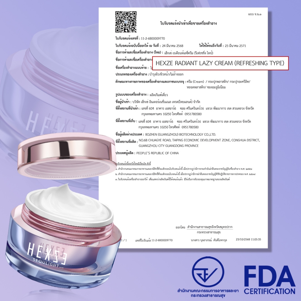 [COD] HEXZE Lazy Cream ไม่ต้องง้อรองพื้น หน้าสว่างใน 10 วินาที หมดปัญหารองพื้นเป็นคราบ ลุคใสผิวดี บางเบา ไม่อุดตัน