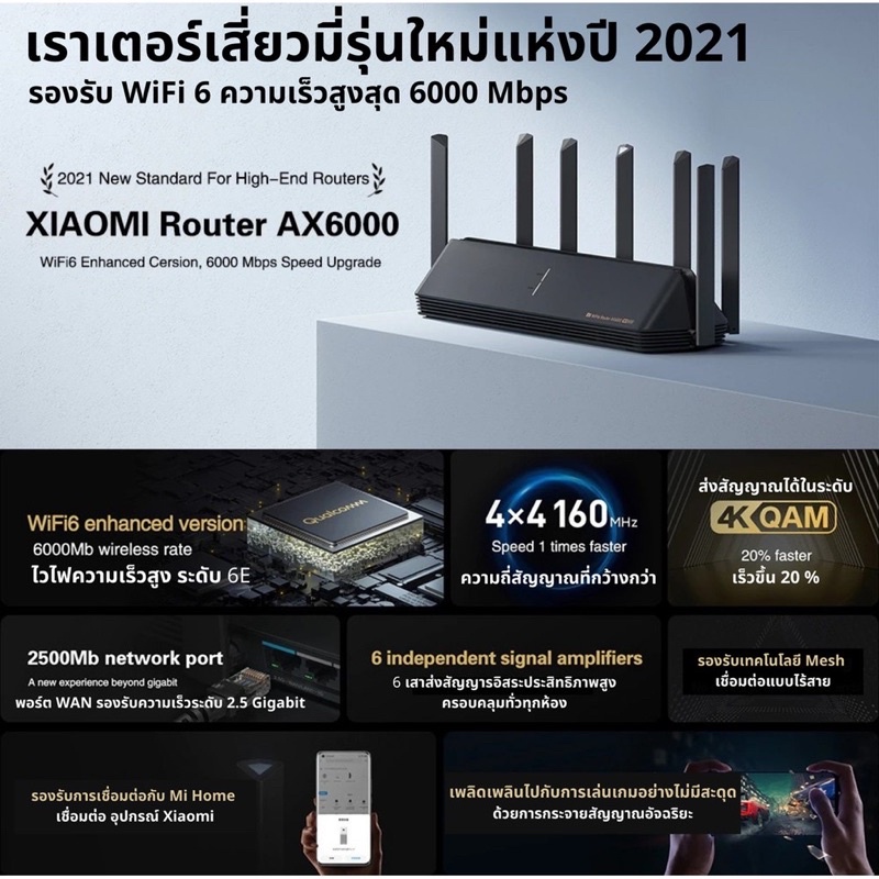 [พร้อมส่ง] Xiaomi Router AX6000 / AX3600 เครื่องขยายสัญญาณอินเตอร์เน็ต WiFi 6 มีเสา AIOT ควบคุมสมาร์ทโฮมต่างๆ