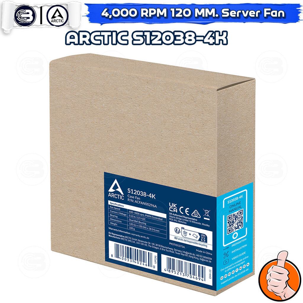 [CoolBlasterThai] ARCTIC S12038-4K 4000 RPM (size 120 mm.) PC Fan Case ประกัน 6 ปี