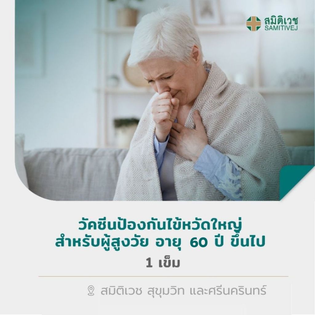 [E-Coupon] วัคซีนป้องกันไข้หวัดใหญ่ สำหรับผู้สูงวัย อายุ 60 ปี ขึ้นไป เข็ม ที่ 1 สมิติเวช สุขุมวิท และศรีนครินทร์