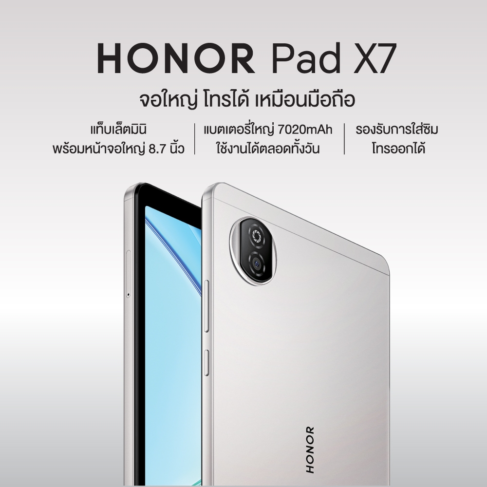 [New Arrival] HONOR Pad X7 แท็บเล็ตมินิจอใหญ่ 8.7 นิ้ว รองรับการใส่ซิม | RAM 4GB ROM 128GB | บาง 7.55 มม. | แบต 7020mAh