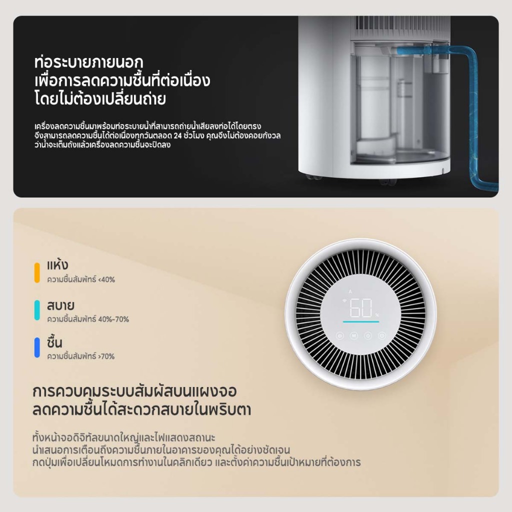 [HOT] Xiaomi Smart Dehumidifier 22L เครื่องลดความชื้นอัจฉริยะ ถังน้ำ 4.5 ลิตร โหมดกำจัดความชื้น 3 รูปแบบ 35.5dB