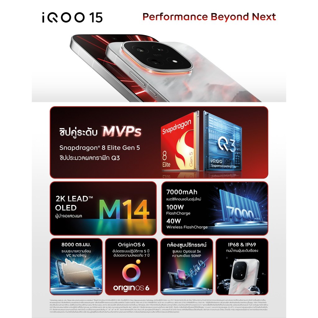 [New Arrival] iQOO 15 (12+256G, 16+512G) ไอคูล OriginOS 6 | Snapdragon® 8 Elite Gen 5 + Q3 Chip