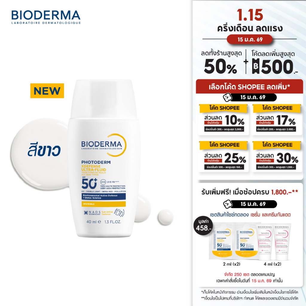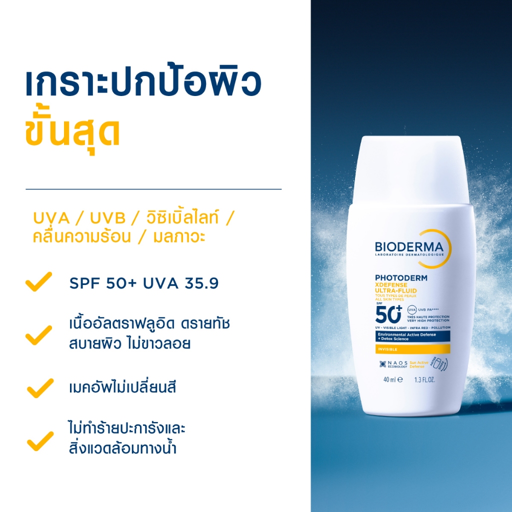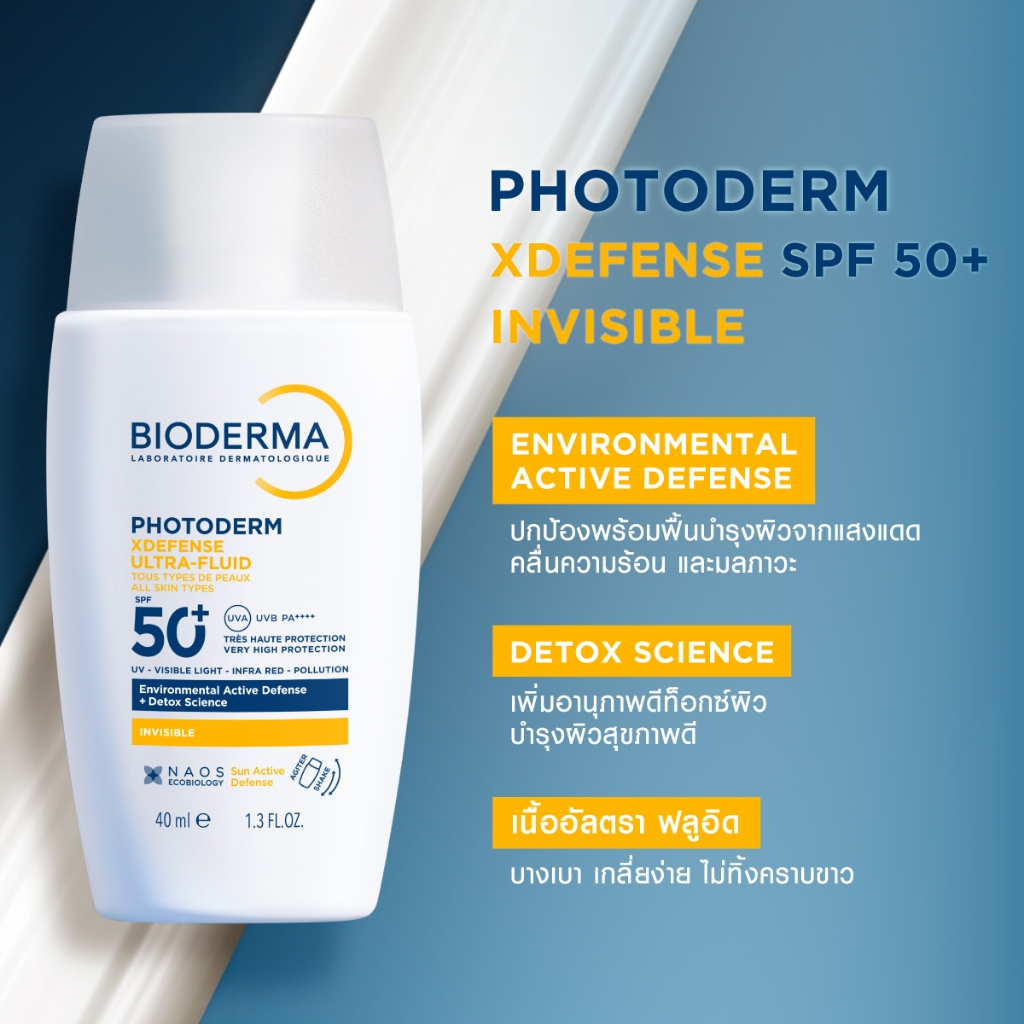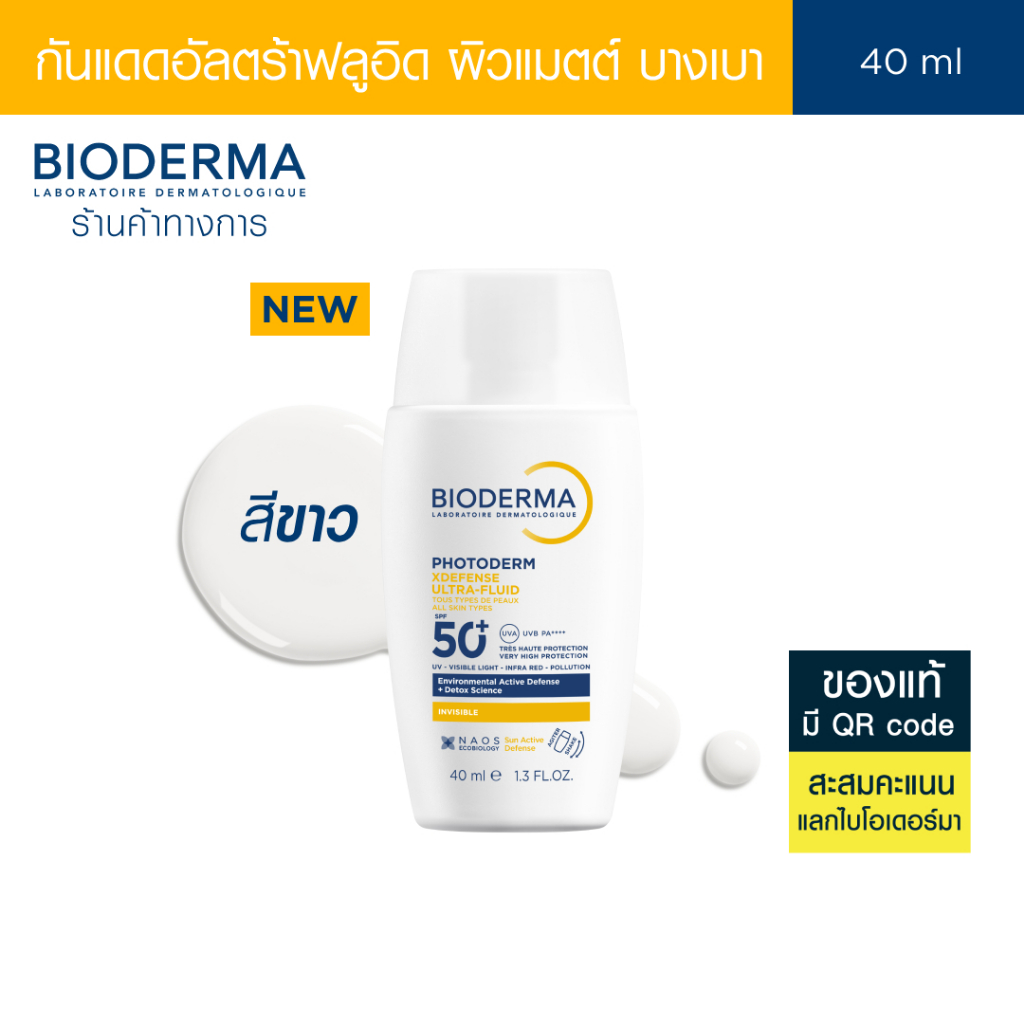 [New] Bioderma Photoderm XDefense SPF50+ PA++++ (Invisible Color) 40 ml. กันแดดเนื้อบางเบา ซึมไว ไม่มันวาว