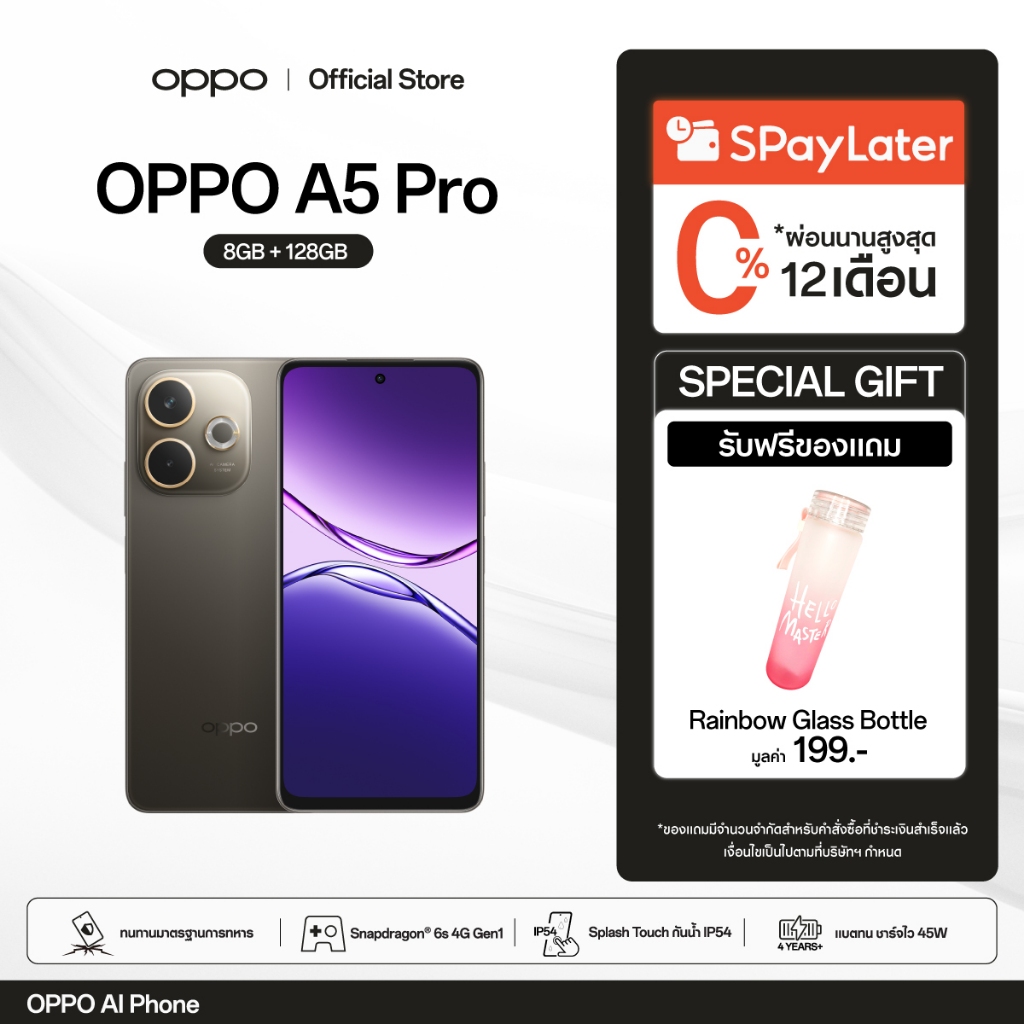 [หมด] OPPO A5 Pro (8+128G) ดีไซน์สวย ทนทาน AI LinkBoost กันน้ำ/กันฝุ่น IP69กล้อง 50 MP ชาร์จไว 45W แบตเตอรี่ 5800 mAh