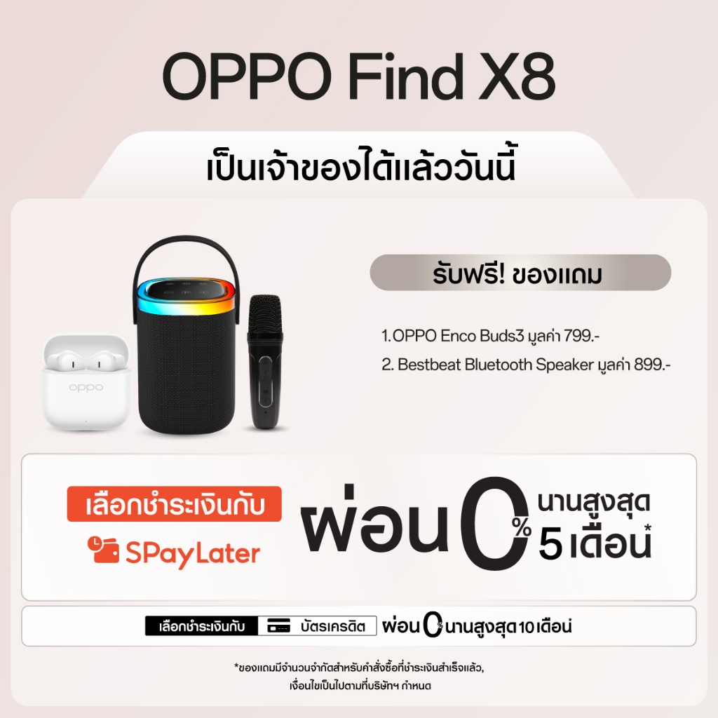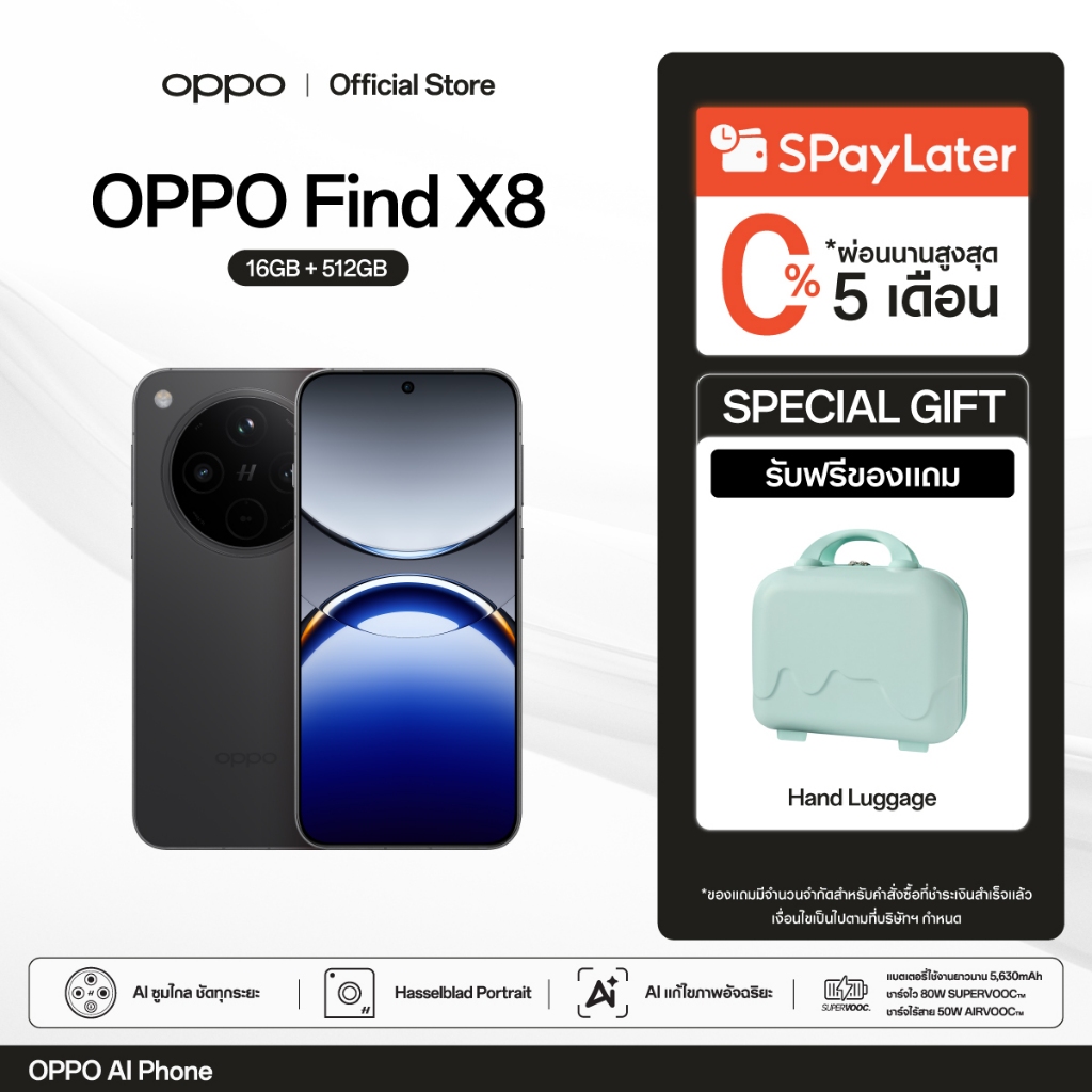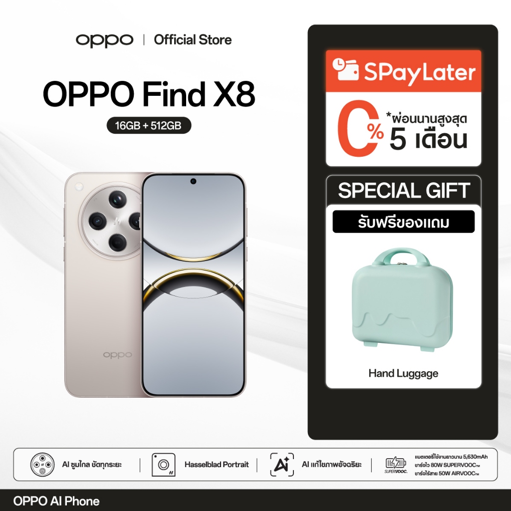 OPPO Find X8 (16+512G)|โทรศัพท์มือถือ AI อัจฉริยะ กล้องหลัก 50 MP ชาร์จไว 80W แบตเตอรี่ 5630mAh รับประกัน12เดือน