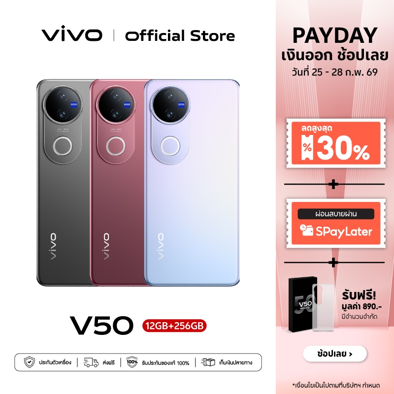vivo V50 (12+256GB) | Snapdragon®7 Gen3 | กล้อง 50MP ZEISS | จอ 6.77", 120Hz | แบต 6000mAh+90W