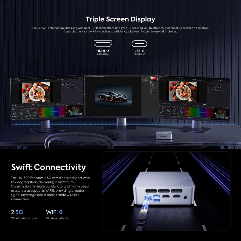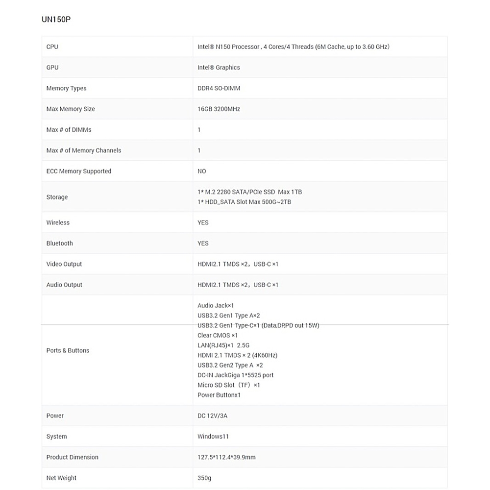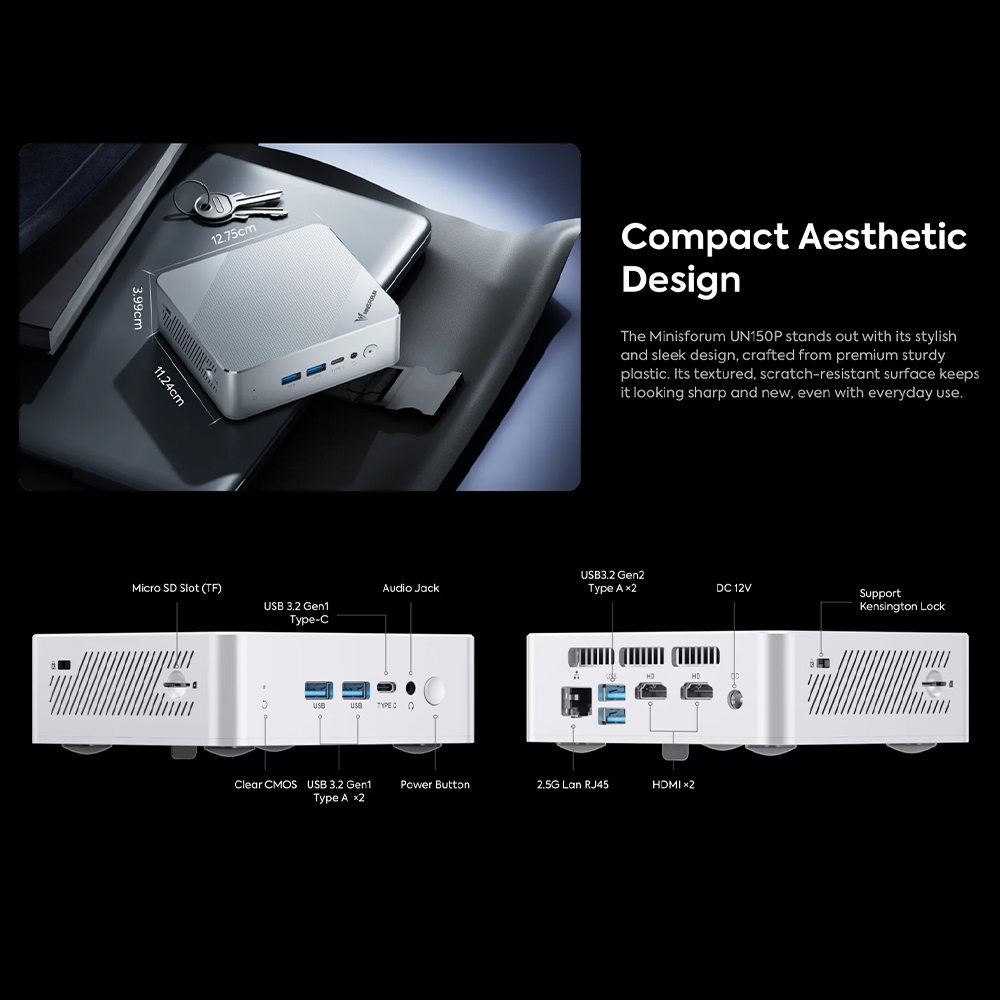 [Nuroum Official] MINISFORUM UN150P ใหม่ Intel Twin Lake N150 CPU ขนาด RAM 16GB DDR4 ROM 512GB M.2 2280 PCIe
