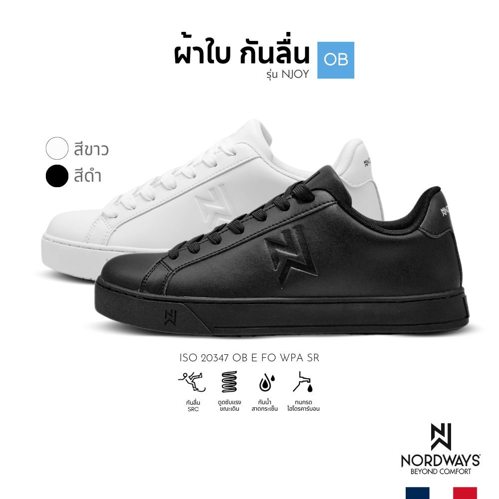 Nordways รุ่น NJOY รองเท้าผ้าใบ ใส่เดิน ใส่ทำงาน นุ่ม กันลื่น ทน มีISO สีขาว/สีดำ Size36-48