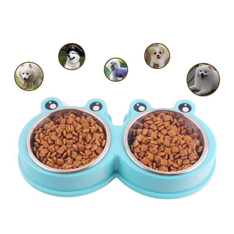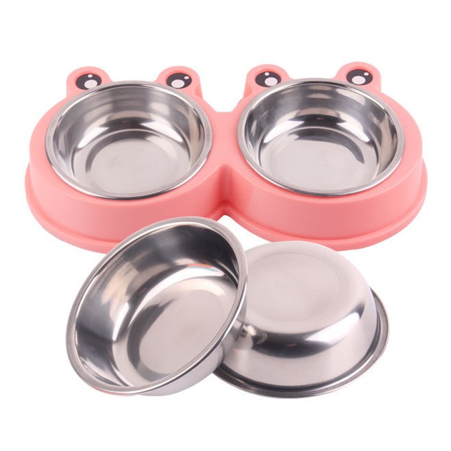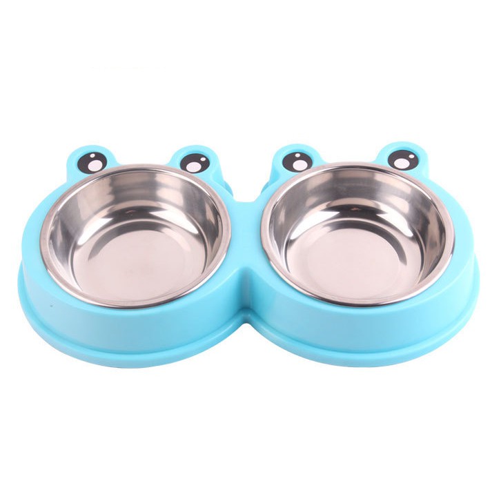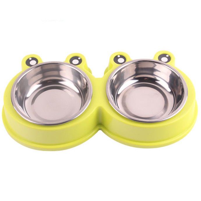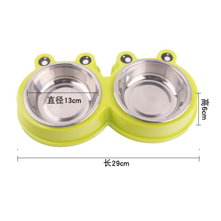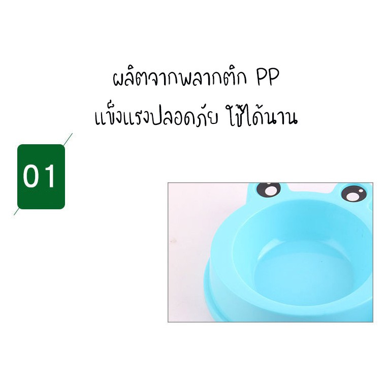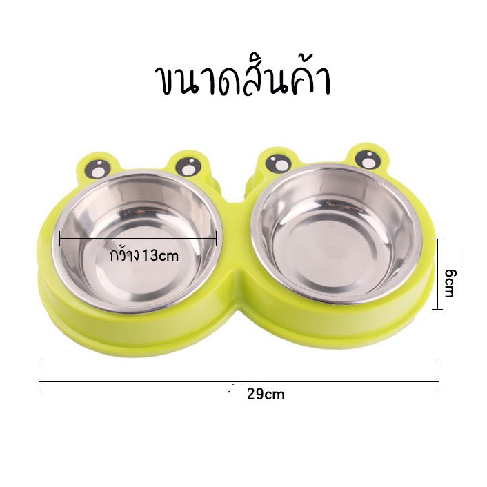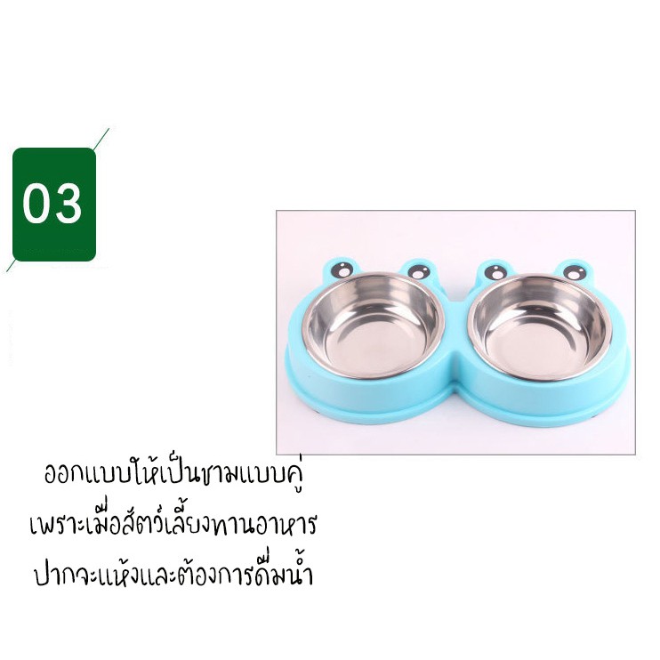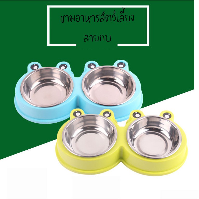 #P100 ชามอาหารสัตว์เลี้ยง 2 หลุม ลายกบ ชามอาหารแมว ชามอาหารสุนัข