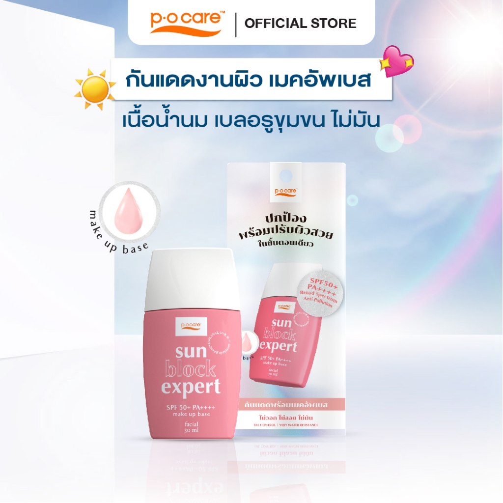 POCARE SUN BLOCK EXPERT FACIAL SPF50+ PA++++ 30ml กันแดดโทนอัพ เมคอัพเบส เนื้อน้ำนม เบลอรูขุมขน กันน้ำ WATER RESISTANT