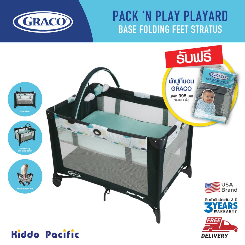 Graco Pack 'N Play Base Folding Feet - Stratus เตียงนอนสำหรับเด็กแรกเกิด