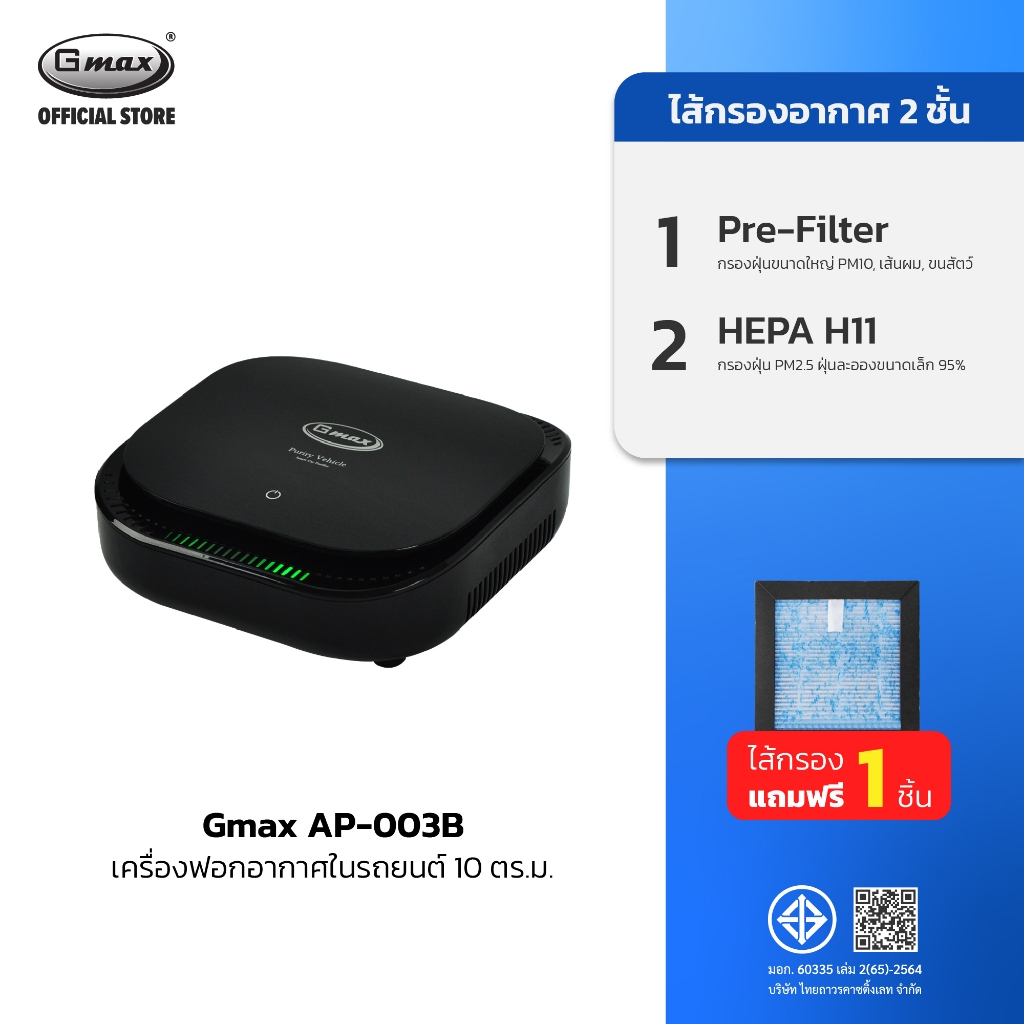 Gmax เครื่องฟอกอากาศในรถยนต์ Car Air Purifier HEPA H11 รุ่น AP-003 ประจุลบ ฝุ่น กลิ่น ควัน