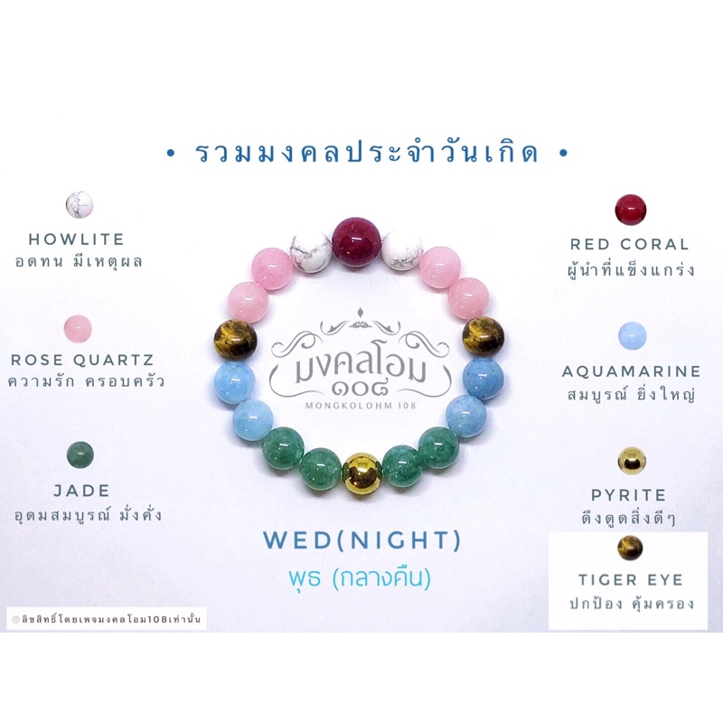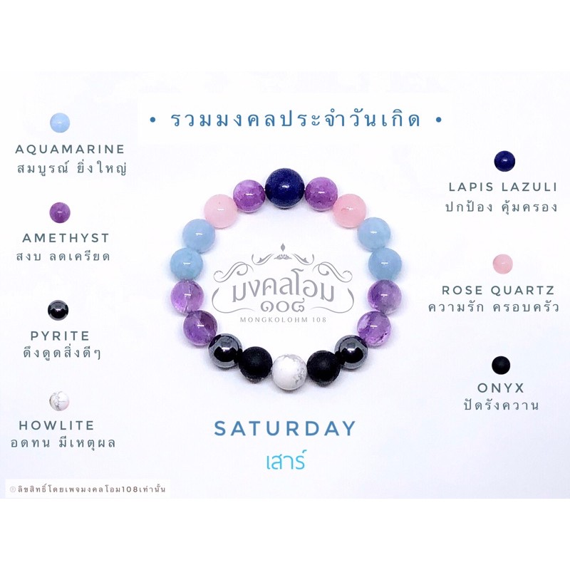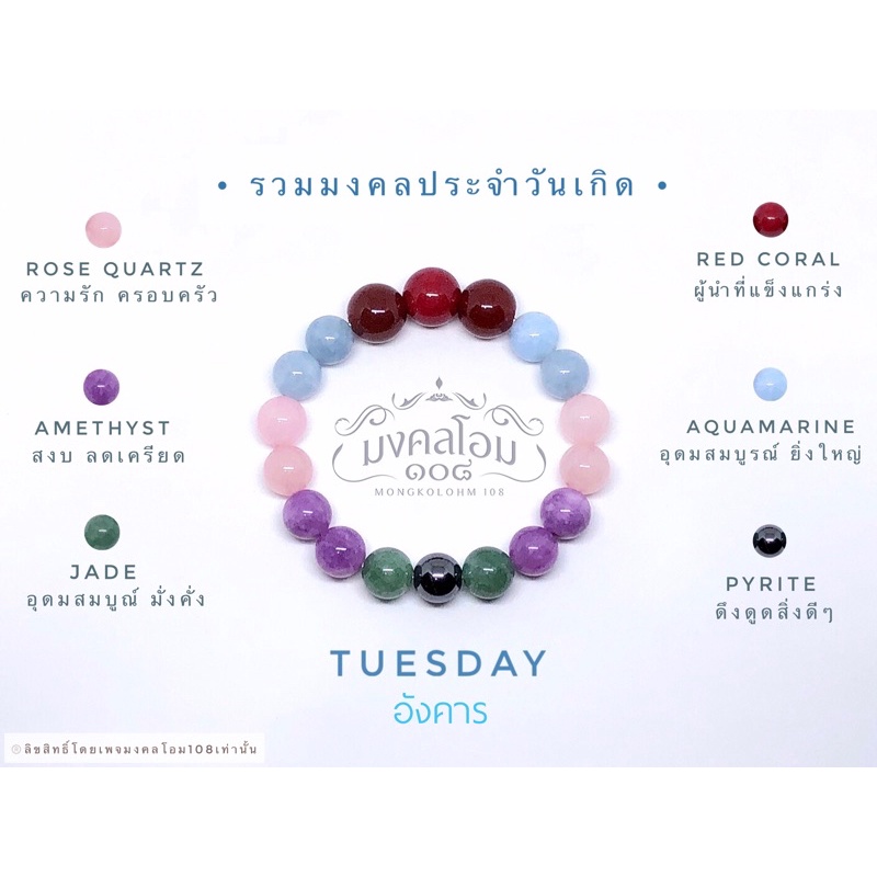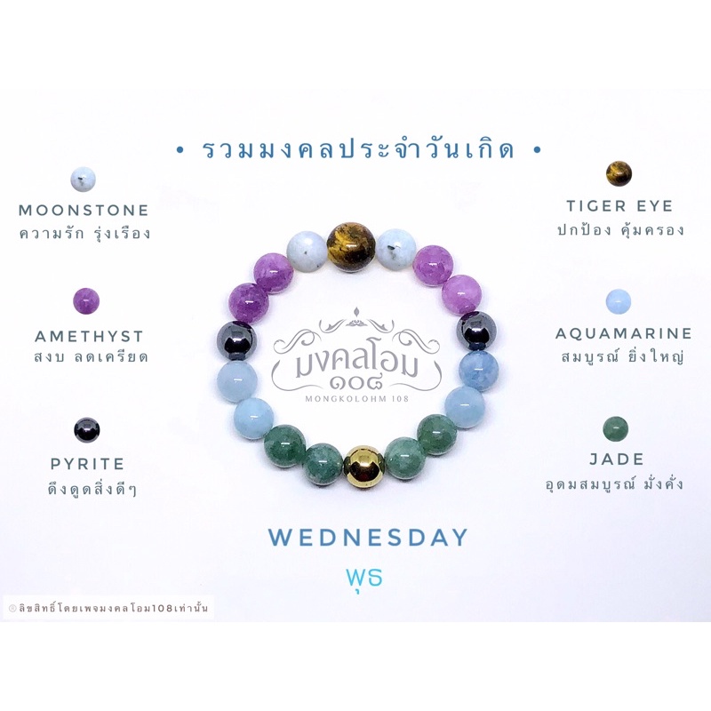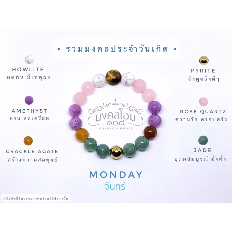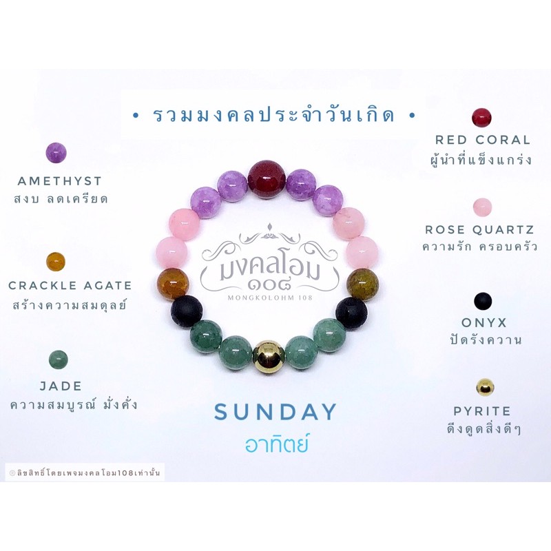 กำไลข้อมือหินประจำวันเกิด [S10-01] มงคลเสริมดวงรอบด้าน ครบทั้ง 8 วัน