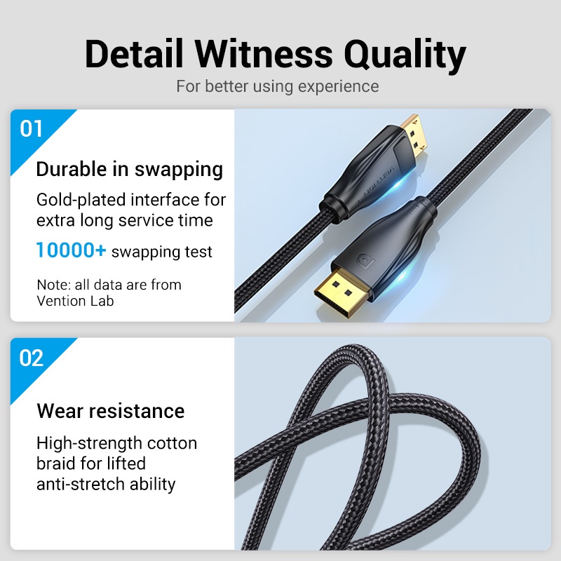 [Shopee Choice] Vention DisplayPort Cable 1.4 8K 60Hz 4K HDR Display Port Video Cable for HDTV Displays Monitors PC Laptop