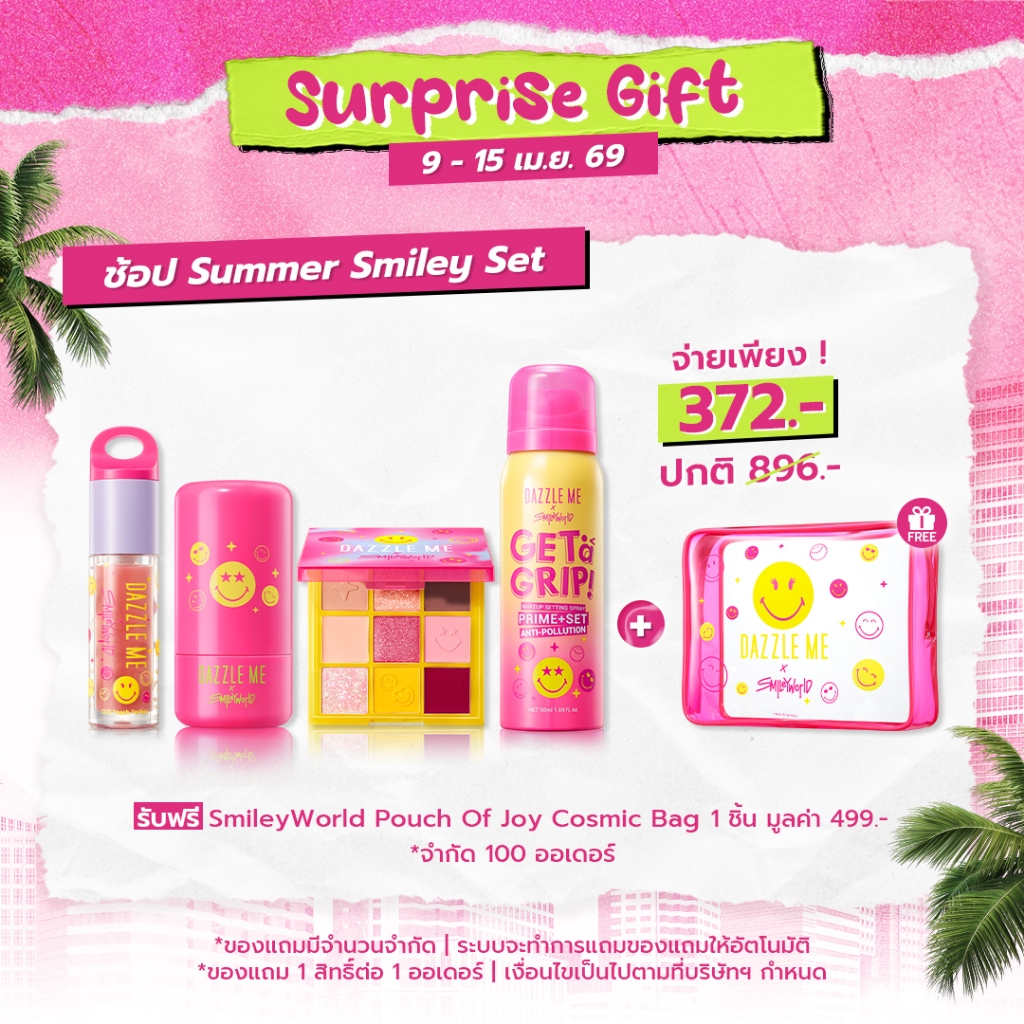 [Summer Smiley Set] Dazzle Me X SmileyWorld Setting Spray + Eyeshadow + Jelly Blush + Lip Oil