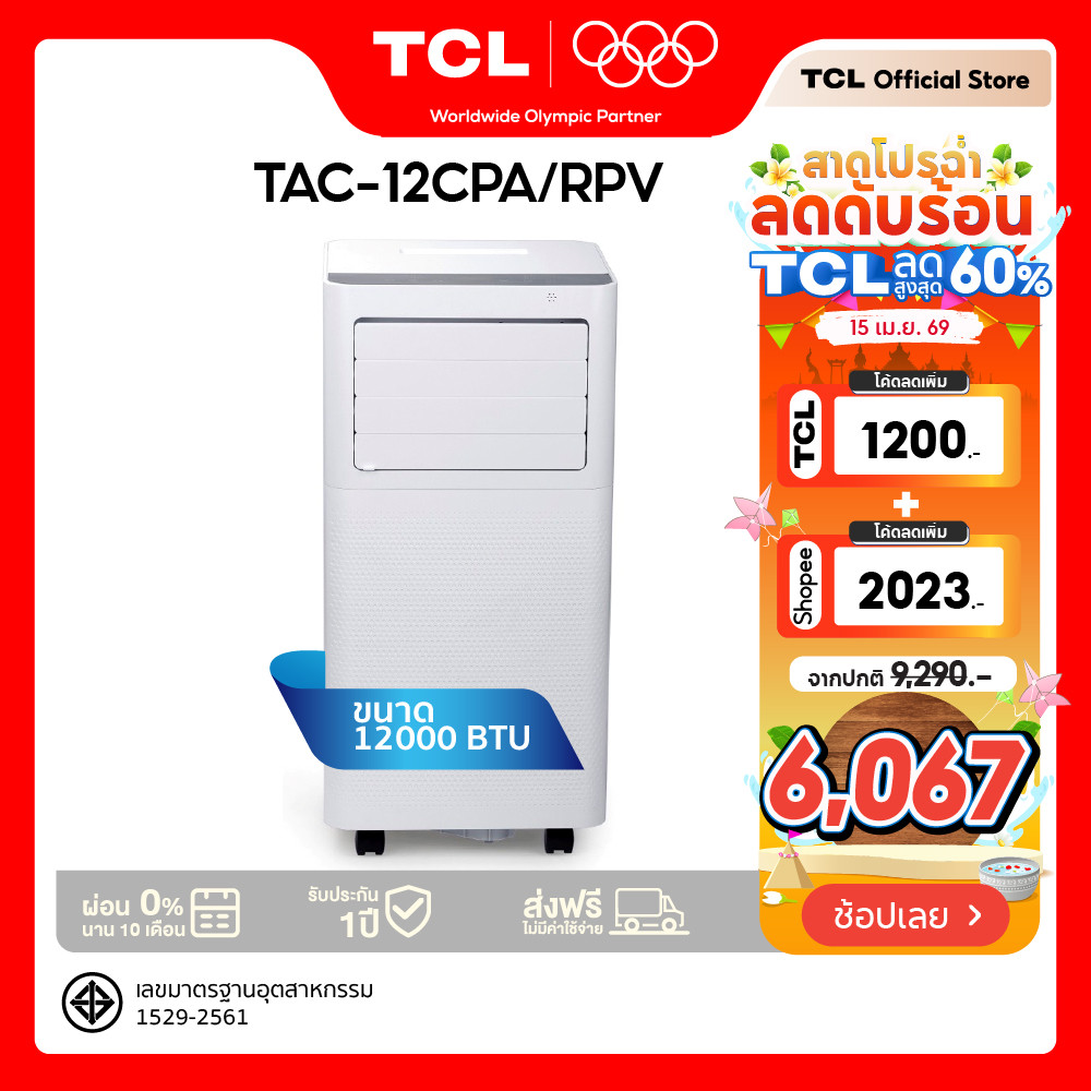 TCL แอร์เคลื่อนที่ ขนาด 12000 BTU รุ่น TAC-12CPA/RPV Portable AC ระบบสัมผัส หน้าจอแสดงผลLED เย็นเร็ว