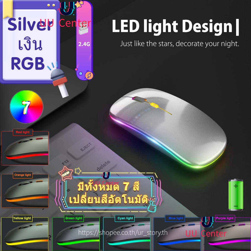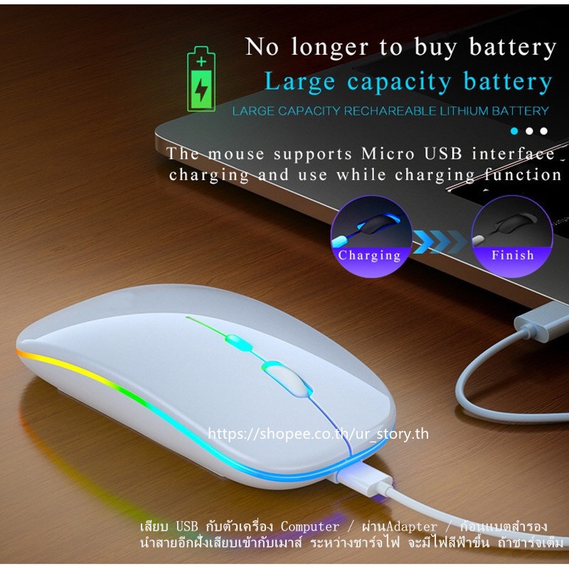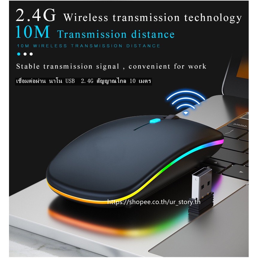 [Wireless mouse]Model M1 เมาส์เก็บเสียง เงียบไร้เสียง Office 2.4GHz Wireless Silent Mouse RGB Backlight DPI 1000-1600 M1