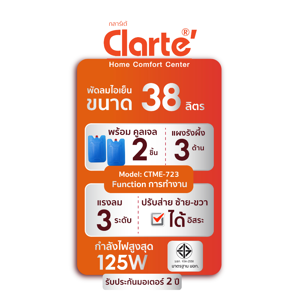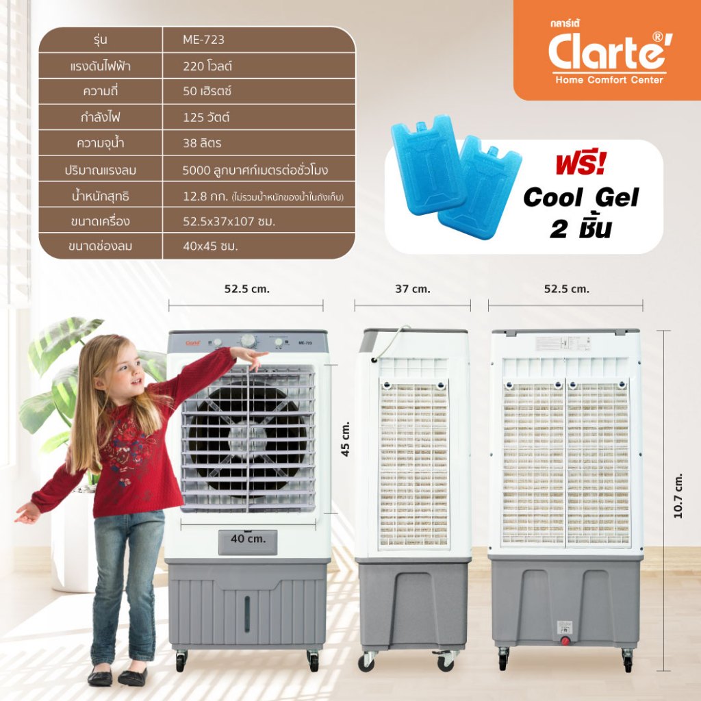 [kodang Sale]รุ่นใหม่มีฟิวเตอร์Clarteพัดลมไอเย็น 38 ลิตร รุ่น CTME723ฟรีคูเจล2 ชิ้นพร้อมส่งรับประกันทุกเครื่อง